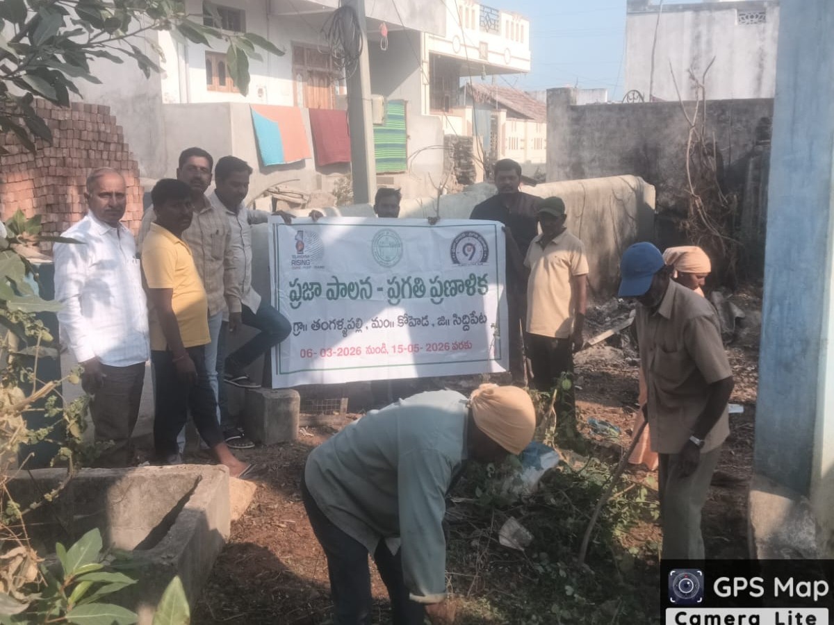 SDPT: కోహెడ మండలంలోని తంగళ్లపల్లిలో ప్రజా పాలన–ప్రగతి ప్రణాళిక కార్యక్రమంలో భాగంగా తాగునీటి ట్యాంకుల క్లోరినేషన్ చేపట్టారు. సర్పంచ్ బోయిని సంపత్ ఆధ్వర్యంలో నిర్వహించిన ఈ కార్యక్రమంలో ఓవర్ హెడ్ ట్యాంకులను శుభ్రపరిచి క్లోరిన్ కలిపి ప్రజలకు స్వచ్ఛమైన తాగునీరు అందించే చర్యలు చేపట్టారు. ఈ కార్యక్రమంలో పంచాయతీ కార్యదర్శి, వార్డు సభ్యులు, గ్రామస్తులు పాల్గొన్నారు.