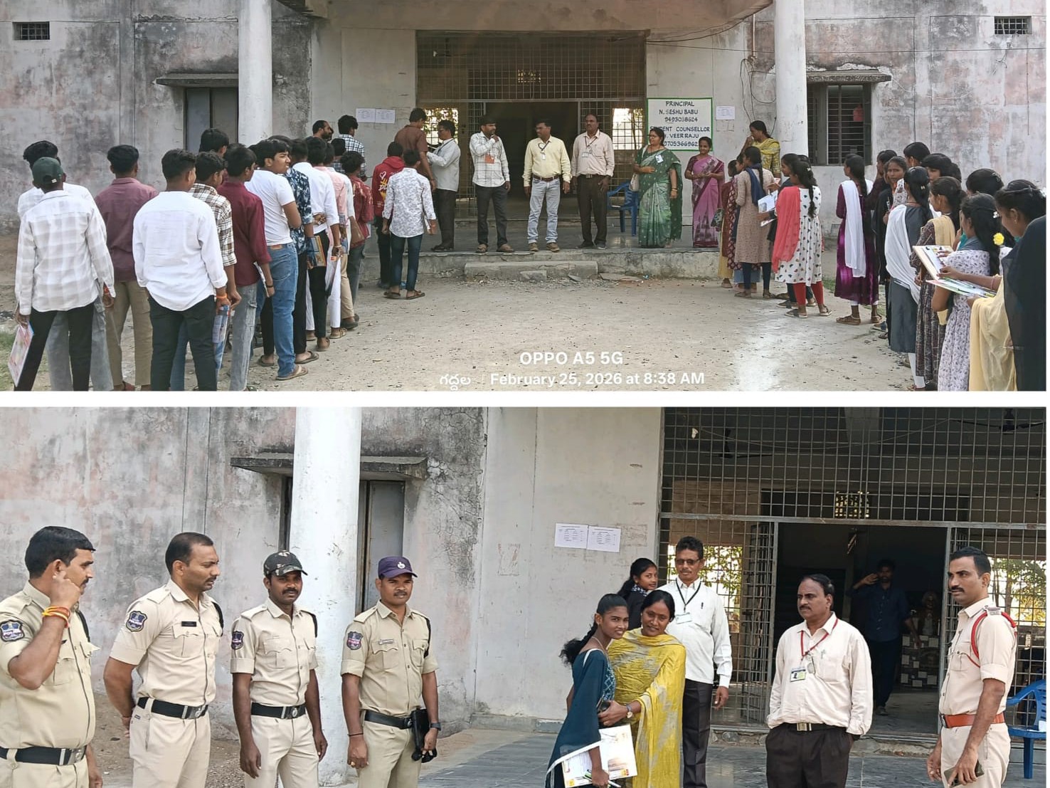 BDK: అశ్వాపురం మండల కేంద్రంలోని ప్రభుత్వ జూనియర్ కళాశాలలో ఇంటర్మీడియట్ వార్షిక పరీక్షలు బుధవారం కట్టుదిట్టమైన భద్రతా ఏర్పాట్ల మధ్య ప్రారంభమయ్యాయి. పరీక్షా కేంద్రం వద్ద సిఐ అశోక్ రెడ్డి ఆధ్వర్యంలో పోలీస్ బందోబస్తు ఏర్పాటు చేయగా, విద్యార్థులను క్షుణ్ణంగా తనిఖీ చేసిన తర్వాతే కేంద్రాల్లోకి అనుమతించారు.