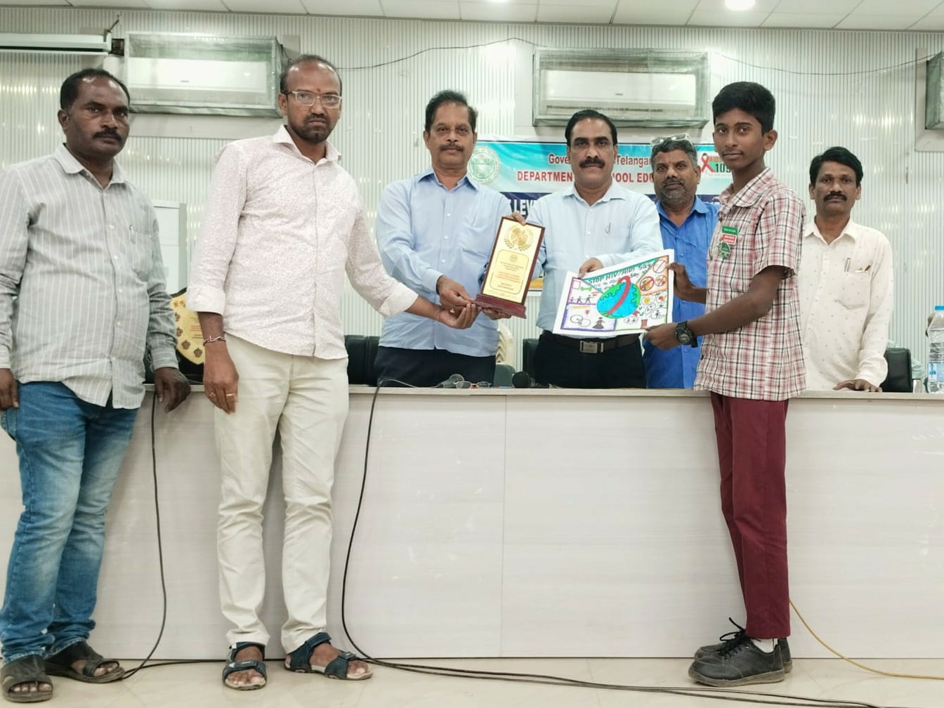 KNR: కౌమార విద్య, HIV, AIDS పైన విద్యార్థులలో అవగాహన కల్పించుటకు జిల్లా స్థాయిలో నిర్వహించిన పోస్టర్ మేకింగ్ పోటీలలో కరీంనగర్ ప్రభుత్వ పురాతన ఉన్నత పాఠశాల 9th విద్యార్థి కుంచం అక్షయ్ కుమార్ ద్వితీయ బహుమతి సాధించారు. జిల్లా అదనపు పరిపాలనాధికారి అశ్వినీ తానాజీ వాకడే, క్వాలిటీ కో ఆర్డినేటర్ అశోక్ రెడ్డి, జిల్లా సైన్స్ అధికారి చేతుల మీదుగ అందుకున్నారు.