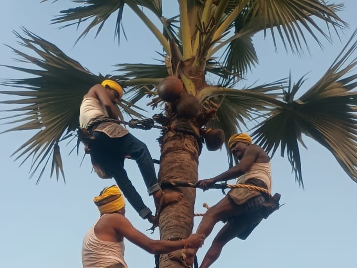 SRCL: కోనరావుపేట మండలం బావుసాయిపేట గ్రామంలో రేణుక ఎల్లమ్మ సిద్దోగం ఘనంగా నిర్వహించారు. ఐదేళ్లకోసారి జరిగే పండుగకు గీతకార్మికులు పెద్దఎత్తున హాజరయ్యారు. వేడుకలో భాగంగా ఒకే తాటిచెట్టు కల్లును కొంత మంది గీతకార్మికులు కలిసి కిందకు దింపారు. అమ్మవారికి సమర్పించే కల్లు కుండ.. మోకు, ముస్తాదుకు అంటకుండా చేతుల మీదుగా దించడం ఆనవాయితీగా వస్తోంది.