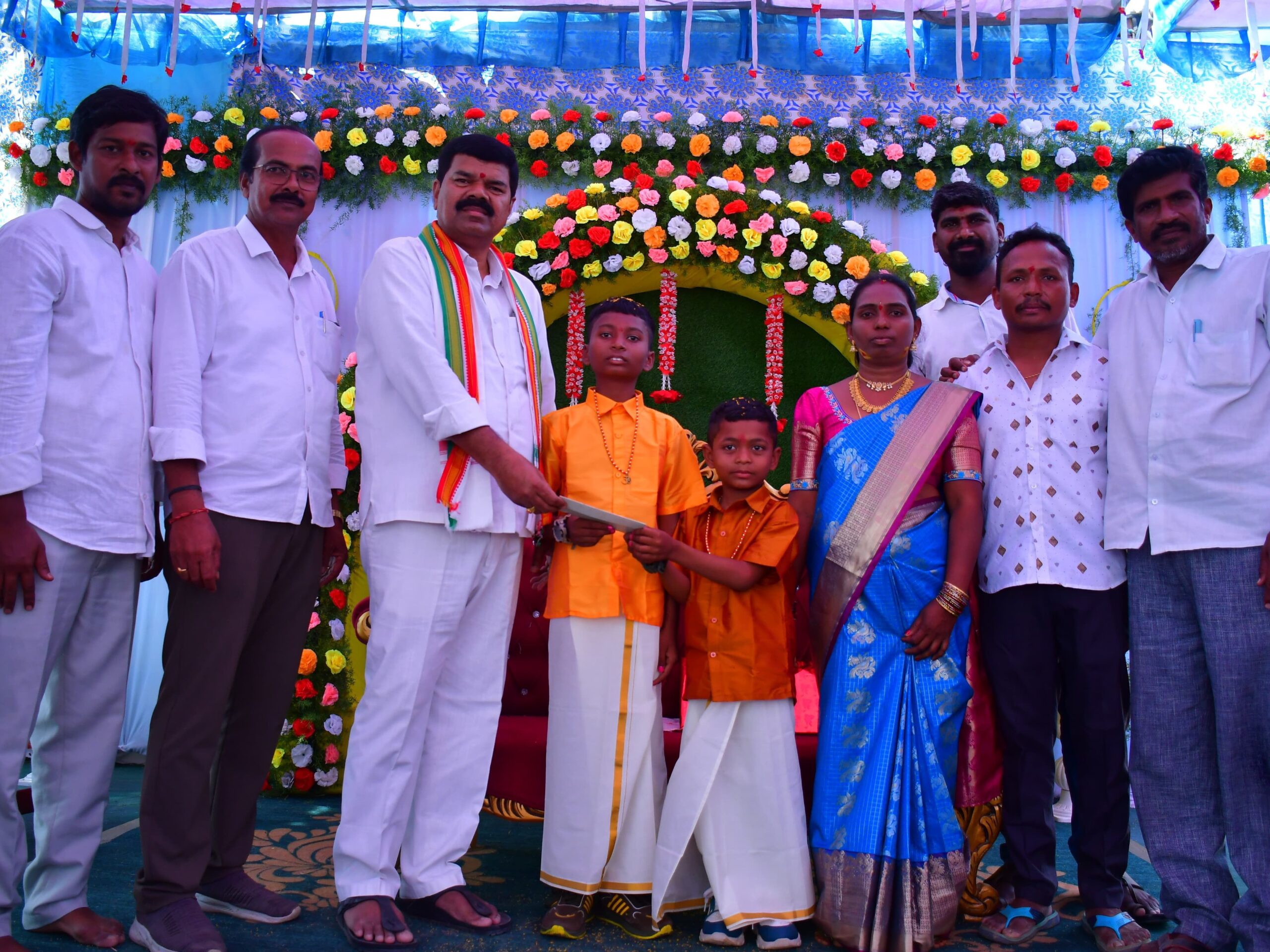 BDK: అశ్వాపురం మండలం మొండికుంట గ్రామానికి చెందిన మూతి నాగరాజు రమణి దంపతుల కుమారులు మను శ్రీ విష్ణు వర్ధన్ దొర, రిత్విక్ శ్రీ వర్ధన్ దొరల పంచకట్టు వేడుక గురువారం ఘనంగా నిర్వహించబడింది. ఈ వేడుకకు పినపాక ఎమ్మెల్యే పాయం వెంకటేశ్వర్లు హాజరై చిన్నారులను ఆశీర్వదించారు. ఎమ్మెల్యే మాట్లాడుతూ.. సంప్రదాయాలకు నిలువెత్తు నిదర్శనం పంచకట్టు వేడుక అని అన్నారు.