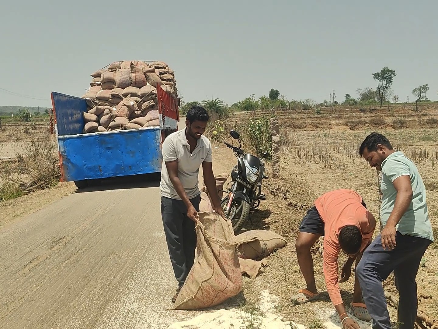 MDK: రామాయంపేట ఎఫ్సీఐ గోదాం నుంచి దంతేపల్లి వెళ్తున్న బియ్యం లారీ క్యాట్రియాల శివారులోని గుంతల రోడ్డు కారణంగా కుదుపునకు లోనైంది. దీంతో లోడులోని బియ్యం సంచులు ఒక్కసారిగా రోడ్డుపై జారిపడ్డాయి. ఆ సమయంలో వాహనాలేవీ రాకపోవడంతో పెను ప్రమాదం తప్పింది. సిబ్బంది వెంటనే స్పందించి బస్తాలను తిరిగి లారీలోకి చేర్చారు. లోడ్ అజాగ్రతగా తరలించడంపై స్థానికులు ఆగ్రహం వ్యక్తం చేస్తున్నారు.