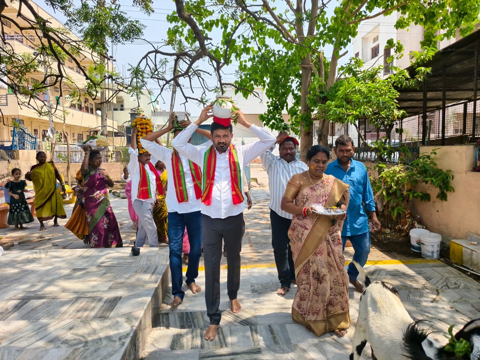 NRML: ప్రియదర్శిని నగర్లో మున్సిపల్ పారిశుధ్య కార్మికుల ఆధ్వర్యంలో ప్రతి సంవత్సరం నిర్వహించే పోచమ్మ అమ్మవారి బోనాల పండుగ ఆదివారం ఘనంగా జరిగింది. ఈ కార్యక్రమంలో మున్సిపల్ వైస్ ఛైర్మన్ అప్పాల గణేష్ చక్రవర్తి పాల్గొని అమ్మవారికి ప్రత్యేక పూజలు నిర్వహించారు. స్థానికులు పెద్ద సంఖ్యలో హాజరై భక్తిశ్రద్ధలతో బోనాలు సమర్పించారు.