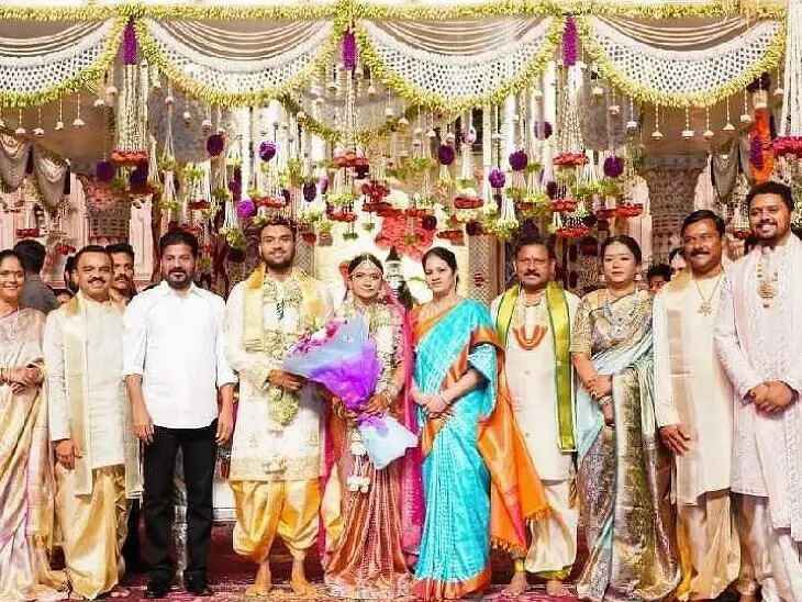 VKB: పరిగి MLA రామ్మోహన్ రెడ్డి కుమార్తె మేఘన సంతోష్ రెడ్డిల వివాహం HYDలోని వట్టినాగులపల్లిలో శనివారం రాత్రి అంగరంగ వైభవంగా జరిగింది. ఈ వేడుకకు CM రేవంత్ రెడ్డి సతీ సమేతంగా వచ్చి నూతన వధూవరులను ఆశీర్వదించారు. మంత్రులు, MLAలు, వికారాబాద్ జిల్లా కాంగ్రెస్ నాయకులు హాజరయ్యారు. నూతన వధూవరులకు శుభాకాంక్షలు తెలిపారు.