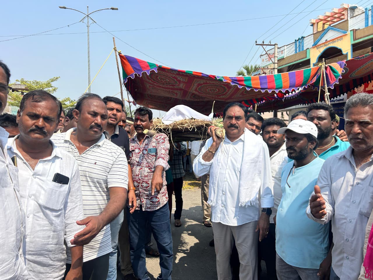 JN: పాలకుర్తి మండల బీఆర్ఎస్ పార్టీ అధ్యక్షుడు పసునూరి నవీన్ తండ్రి పసునూరి సత్యనారాయణ అనారోగ్యంతో ఇవాళ మృతి చెందాడు. విషయం తెలుసుకున్న మాజీ మంత్రి ఎర్రబెల్లి దయాకర్ రావు వారి పార్దివదేహానికి పూలమాల వేసి నివాళులర్పించారు. అనంతరం అంతిమ యాత్రలో పాల్గొని పాడే మోశారు.