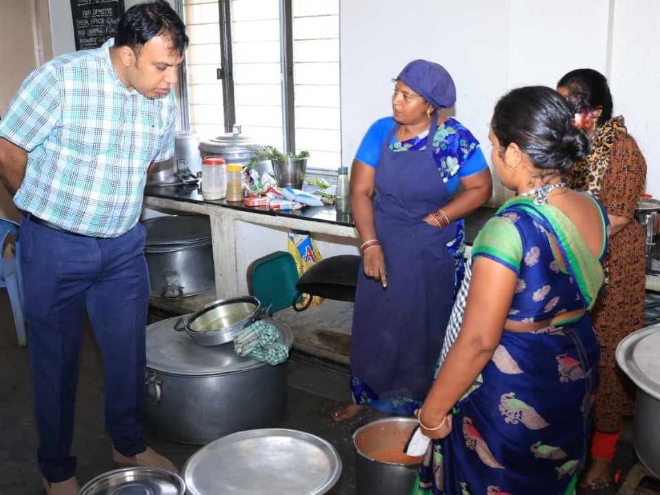 JN: చిల్పూర్ మండల కేంద్రంలోని కస్తూర్బా గాంధీ బాలికా విద్యాలయం(కేజీబీవీ)పాఠశాలను కలెక్టర్ సందీప్ కుమార్ ఝా సందర్శించి, పర్యవేక్షించారు. ఈ సందర్భంగా వంట గదిని పరిశీలించి,ఆహార తయారీ విధానం గురించి వివరాలు అడిగి తెలుసుకున్నారు. విద్యార్థులకు మెనూ ప్రకారం భోజనం అందిస్తున్నారా? అనే విషయం గురించి ఆరా తీశారు. భోజన నాణ్యతపై ప్రత్యేక శ్రద్ధ వహించాలని సూచించారు.
