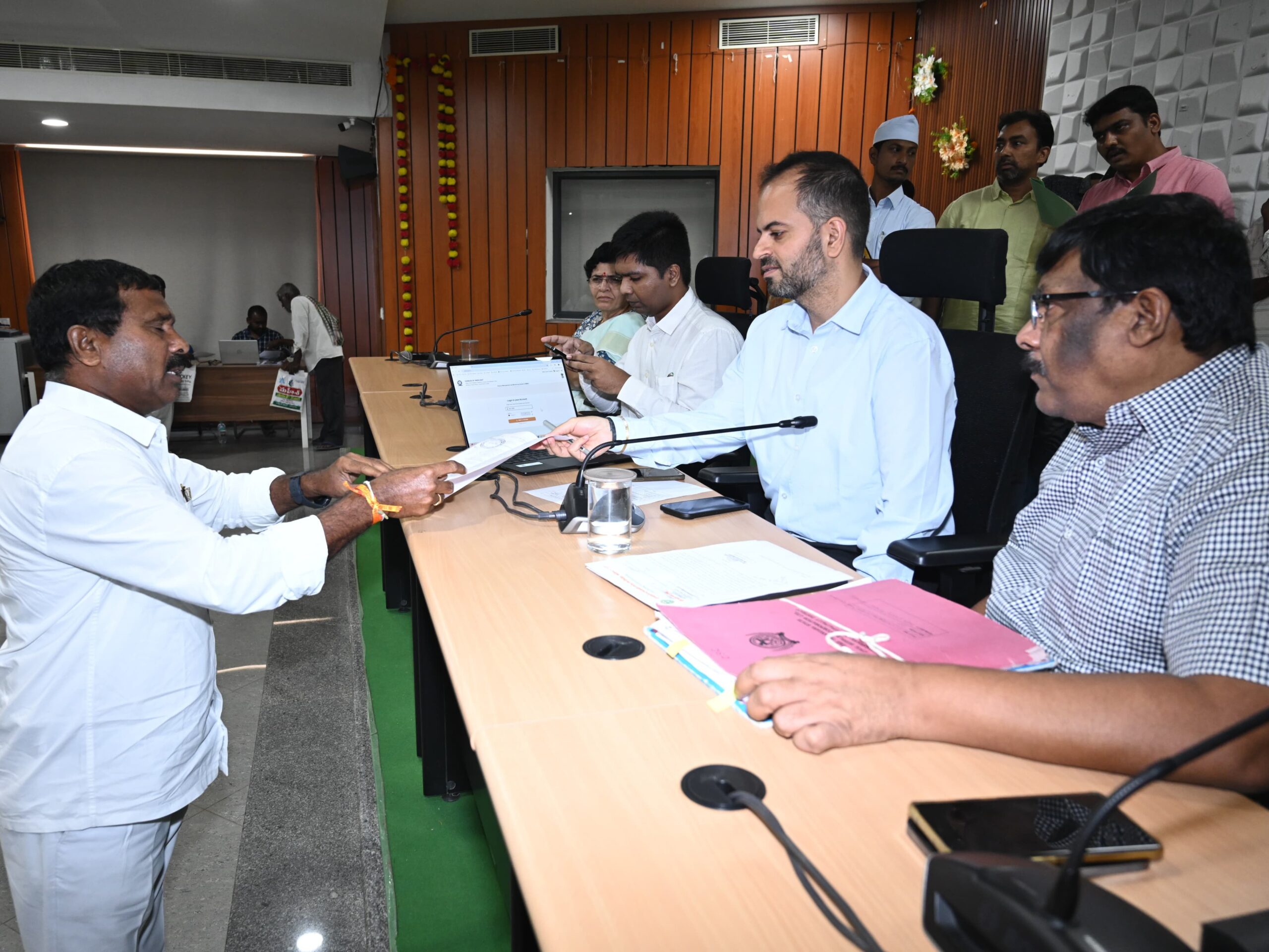 BHPL: ప్రజావాణి దరఖాస్తుల పరిష్కారంలో ఎలాంటి అలసత్వం వహించినా కఠిన చర్యలు తీసుకుంటామని జిల్లా కలెక్టర్ రాహుల్ శర్మ అధికారులను హెచ్చరించారు. సోమవారం IDOC కార్యాలయంలో నిర్వహించిన ప్రజావాణి కార్యక్రమంలో వివిధ ప్రాంతాల నుంచి వచ్చిన 80 దరఖాస్తులను స్వీకరించి, సంబంధిత శాఖల అధికారులకు ఎండార్స్మెంట్ చేశారు. ఈ సందర్భంలో సబ్ కలెక్టర్ మయాంక్ సింగ్ ఉన్నారు.