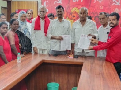 BHNG: ఆలేరు మండలం కొలనుపాకలో సర్వే నంబర్–8లో ఉన్న ప్రభుత్వ భూమిలో 3ఎకరాలను అర్హులైన పేదలకు కేటాయించాలని స్థానిక పేదలు అనేక రోజులుగా గుడిసెలు వేసుకుని అక్కడే నివసిస్తున్నారు. ఈ సందర్భంగా పేదల తరఫున మంగళవారం CPI జాతీయ కార్యదర్శి కామ్రేడ్ పల్లా వెంకటరెడ్డి, MLA కామ్రేడ్ కూనమనేని సాంబశివరావు, MLC నెల్లిగంటి సత్యంలకు మెమొరాండం అందజేశారు.