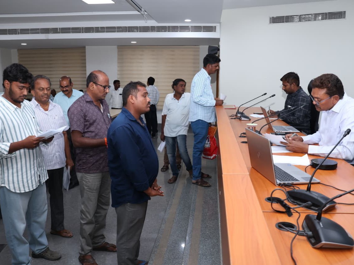 BDK: కొత్తగూడెం IDOC కార్యాలయంలో సోమవారం నిర్వహించిన ప్రజావాణి కార్యక్రమంలో జిల్లా కలెక్టర్ అంకిత్, అదనపు కలెక్టర్ వేణుగోపాల్, స్థానిక సంస్థల అదనపు కలెక్టర్ విద్యా చందన, కలిసి ప్రజల నుంచి వచ్చిన వినతిపత్రాలు, ఫిర్యాదులను స్వీకరించారు.జిల్లాలోని వివిధ ప్రాంతాల నుంచి హాజరైన ప్రజలు తమ వ్యక్తిగత, సమస్యలను కలెక్టర్ దృష్టికి తీసుకువచ్చారు.