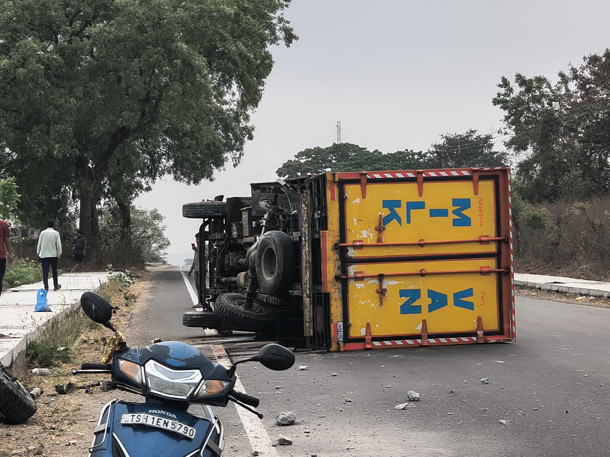 సిద్దిపేట జిల్లా హుస్నాబాద్ మండలం జిల్లెల్లిగడ్డ సమీపంలో సోమవారం ఉదయం పాల వాహనం బోల్తా పడింది. స్థానికులు తెలిపిన వివరాల ప్రకారం… సిద్దిపేట నుంచి హుజురాబాద్కు వెళ్తున్న పాల వ్యాను వెనుక టైరు ఓడిపోవడంతో వాహనం అదుపుతప్పి, రోడ్డు ప్రక్కన కల్వర్టును ఢీకొట్టింది. ఈ ప్రమాదంలో డ్రైవర్ క్లీనర్కు స్వల్ప గాయాలు అయ్యాయి. వెంటనే స్థానికులు సమీప ఆసుపత్రికి తరలించారు.