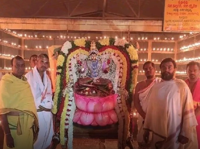NDL: బేతంచెర్ల మండలం పరిధిలో వైష్ణవ పుణ్యక్షేత్రమైన మద్దిలేటి లక్ష్మీనరసింహస్వామి ఆలయంలో దసరా నవరాత్రుల సందర్భంగా మహాలక్ష్మి అలంకారంలో అమ్మవారు భక్తులకు ఇవాళ దర్శనమిచ్చారు. అసిస్టెంట్ కమిషనర్ రామాంజనేయులు వేద పండితులు జ్వాల చక్రవర్తి, కళ్యాణ్ చక్రవర్తి ప్రత్యేక పూజలు నిర్వహించారు. సహస్ర దీపాలంకరణ సేవ అనంతరం అమ్మవారిని రథంపై ఊరేగింపు చేశారు.