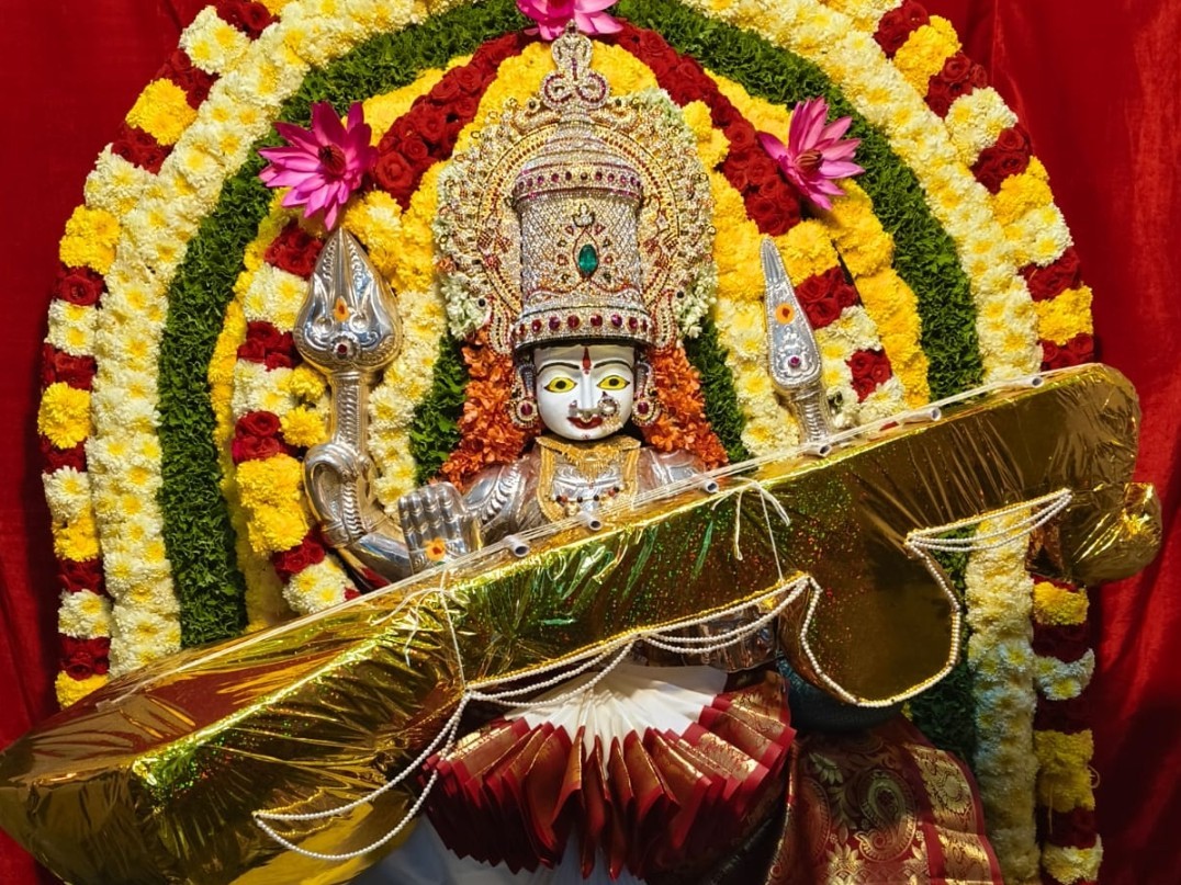 HYD వెంగళరావునగర్ GTS దేవాలయం వద్ద ఎనిమిదవ రోజు నవరాత్రి ఉత్సవ వేడుకలు అంగరంగ వైభవంగా జరుగుతున్నాయి. అమ్మవారు సరస్వతి దేవి అలంకారంలో భక్తులకు దర్శనమిచ్చారు. ఓవైపు సద్దుల బతుకమ్మ పండుగ జరుగుతుండగా, భక్తులు అమ్మవారిని దర్శించుకుని ప్రత్యేక పూజలు నిర్వహించారు. కుటుంబం మొత్తం సుఖశాంతులతో ఉండేలా అమ్మవారి కరుణాకటాక్షాలు తమపై ఉండాలని భక్తులు కోరుకున్నారు.