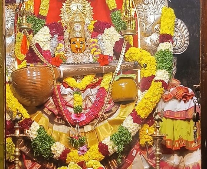 ATP: రాయదుర్గం పట్టణం ఎన్టీఆర్ కాలనీలో వెలసిన సవదత్తి రేణుక ఎల్లమ్మ సోమవారం సరస్వతి దేవి అలంకరణలో భక్తులకు అభయం ఇచ్చింది. దేవి శరన్నవరాత్రుల వేడుకల్లో భాగంగా 8వ రోజు అమ్మవారికి పురోహితులు రాజు ప్రత్యేక పూజలు నిర్వహించారు. అమ్మవారిని ఇవాళ దర్శించుకుంటే సరస్వతి దేవి కరుణాకటాక్షం సిద్ధిస్తుందని పేర్కొన్నారు.