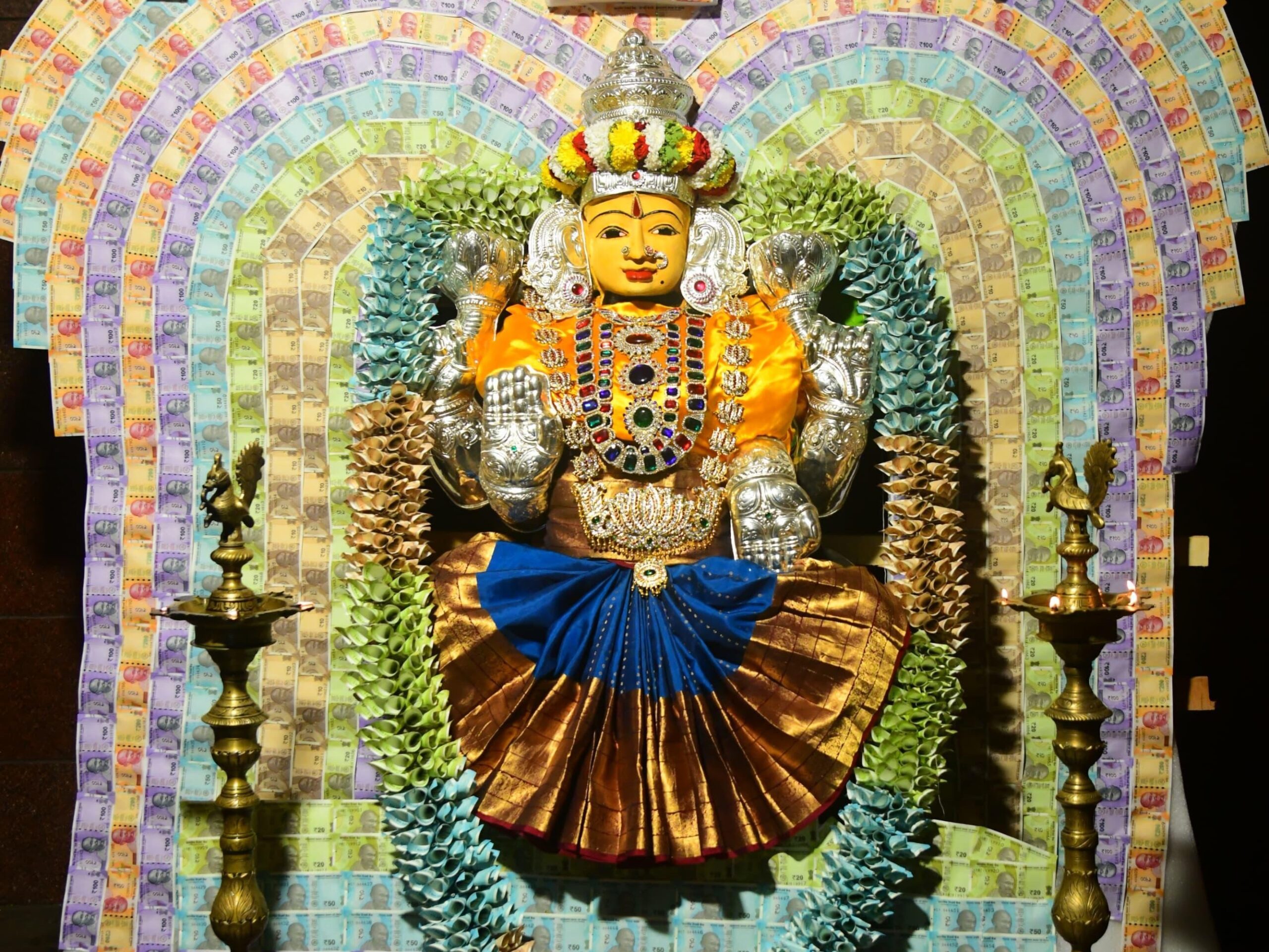 KNR: కరీంనగర్ పట్టణంలోని మహాశక్తి దేవాలయంలో అమ్మవారు శ్రీ దేవి నవరాత్రి ఉత్సవాలలో భాగంగా ఐదవ రోజు శుక్రవారం శ్రీ మహాలక్ష్మీ దేవి (స్కందమాత) అవతారంలో దర్శనమిచ్చారు. అమ్మవారిని డబ్బుల నోట్లతో అలంకరించారు. అమ్మవారిని భక్తులు అధిక సంఖ్యలో వచ్చి దర్శించుకున్నారు.