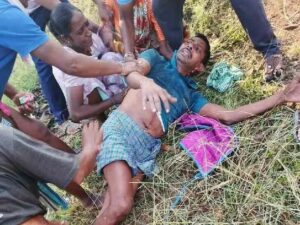 లారీ ఢీకొని వ్యక్తికి తీవ్ర గాయాలు