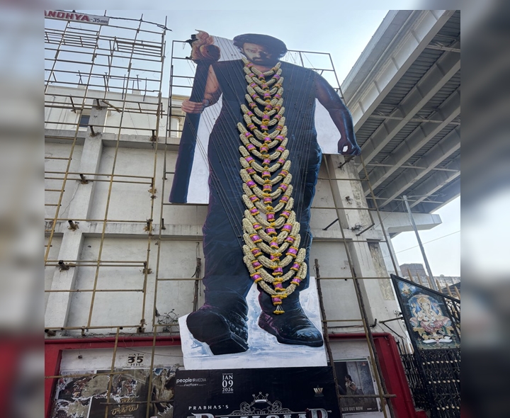 ప్రభాస్ ‘రాజాసాబ్’ మూవీ రేపు విడుదలవుతున్న నేపథ్యంలో ఫ్యాన్స్ సందడి చేస్తున్నారు. ఈ క్రమంలో హైదరాబాద్ RTC X రోడ్లోని సంధ్య థియేటర్ వద్ద అభిమానులు ప్రభాస్ భారీ కటౌట్ ఏర్పాటు చేశారు. దాన్ని 2వేల కిలోల పుష్పాలతో అలకరించారు. ఈ కార్యక్రమం ఆలిండియా ప్రభాస్ ఫ్యాన్స్ అసోసియేషన్ ఆధ్వర్యంలో నిర్వహిస్తున్నారు.