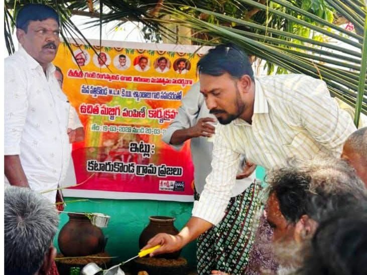 KRNL: క్రిష్ణగిరి మండలం కటారుకొండలో శ్రీ గుంటి రంగస్వామి తిరునాల సందర్భంగా గ్రామంలో భక్తి వాతావరణం నెలకొంది. ఈ సందర్భంగా ఎమ్మెల్యే కేఈ.శ్యామ్ కుమార్ ఆదేశాల మేరకు టీడీపీ కార్యకర్తలు గ్రామ ప్రజలకు ఉచిత మజ్జిగ పంపిణీ చేశారు. వేసవి వేడిని దృష్టిలో ఉంచుకుని ఏర్పాటు చేసిన ఈ కార్యక్రమానికి గ్రామస్తులు పెద్ద సంఖ్యలో హాజరై సేవలను వినియోగించుకున్నారు.
