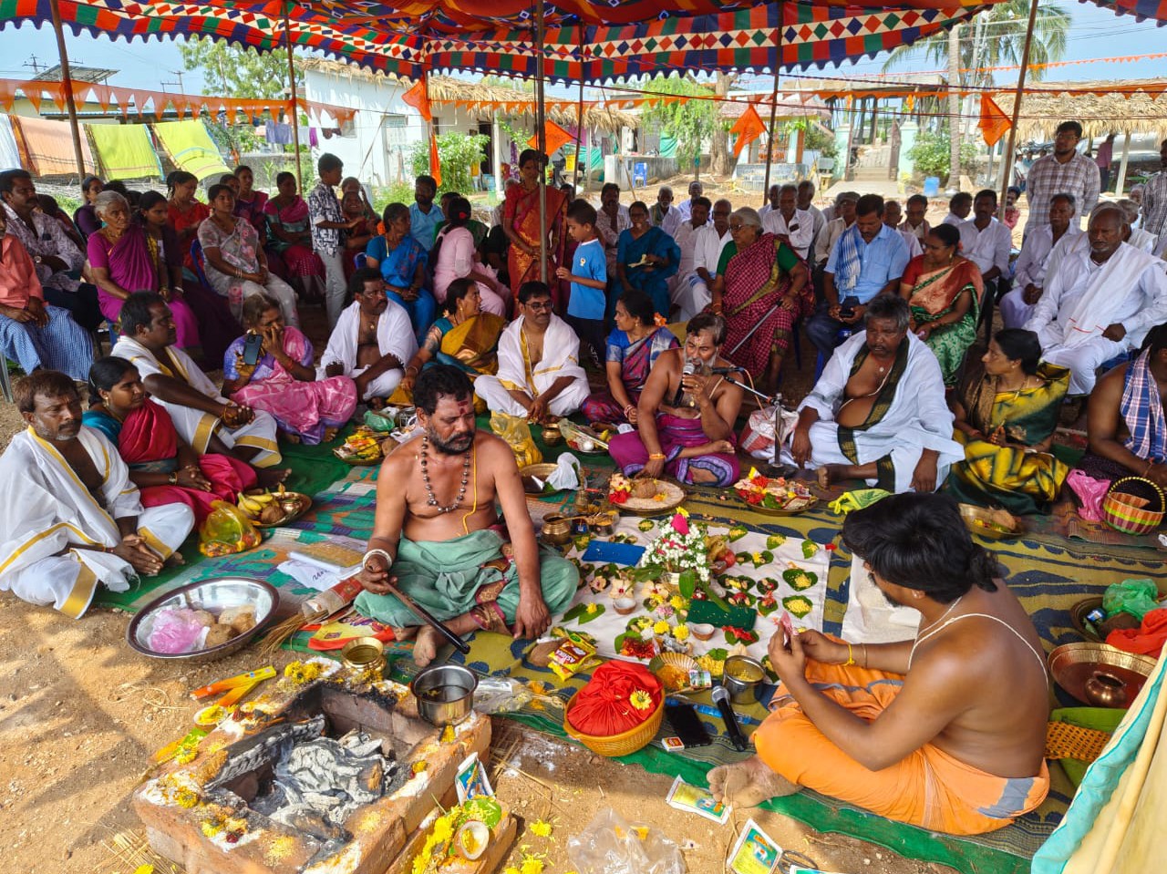 ఎన్టీఆర్: తిరువూరు మండలం వామకుంట్లలో రామాలయ నిర్మాణానికి శంకుస్థాపన, భూమి పూజలు నిర్వహించారు. పలువురు దంపతులు పీటలపై కూర్చుండగా, వేద పండితుల మంత్రోచ్ఛారణతో పూజలు నిర్వహించారు. ఈ కార్యక్రమంలో అధిక సంఖ్యలో భక్తులు, గ్రామస్థులు పాల్గొన్నారు. దీంతో ఆలయంలో ఆధ్యాత్మిక శోభ సంతరించుకుంది.