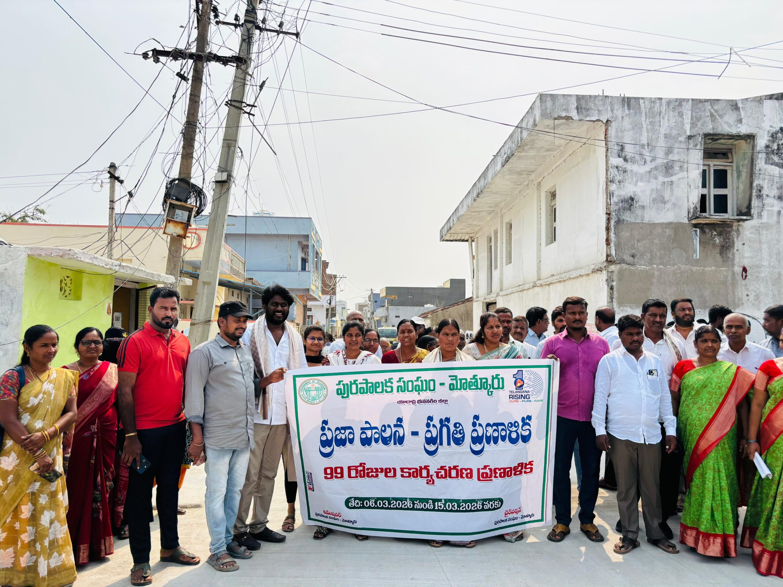 BHNG: ‘ప్రజా పాలన ప్రగతి ప్రణాళిక’ 99 రోజుల కార్యాచరణలో భాగంగా మోత్కూర్ మున్సిపాలిటీ 8వ వార్డులో ఆదివారం కార్యక్రమం నిర్వహించారు. కౌన్సిలర్ పన్నాల శ్రీవిద్య శ్రీనివాస్ రెడ్డి ఆధ్వర్యంలో జరిగిన ఈ కార్యక్రమానికి ముఖ్య అతిథిగా మున్సిపల్ ఛైర్పర్సన్ గడ్డం స్వప్న సోమనరసయ్య హాజరై ప్రారంభించారు. ఈ కార్యక్రమంలో వైస్ ఛైర్మన్ పల్లెర్ల వెంకన్న, పాల్గొన్నారు.