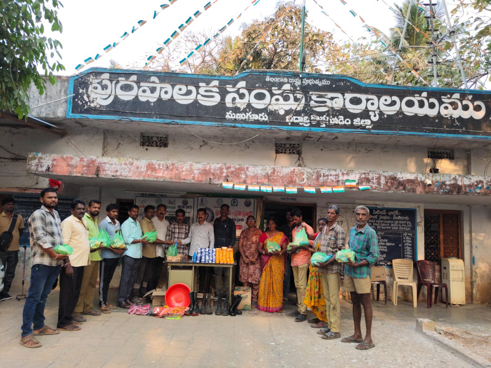 BDK: మణుగూరు మున్సిపాలిటీలో ప్రజాపాలన-ప్రగతి ప్రణాళికలో భాగంగా నిర్వహిస్తున్న 99 రోజుల కార్యాచరణ ప్రణాళికలో భాగంగా మున్సిపల్ వర్కర్లకు కమిషనర్ శ్యామ్ పరిశుభ్రత కిట్లను ఇవాళ పంపిణీ చేశారు. ఈ కార్యక్రమంలో మున్సిపాలిటీకి చెందిన 66 మంది మున్సిపల్ కార్మికులకు ఒక సంవత్సరానికి అవసరమైన పరిశుభ్రత వస్తువులను అందజేశారు.