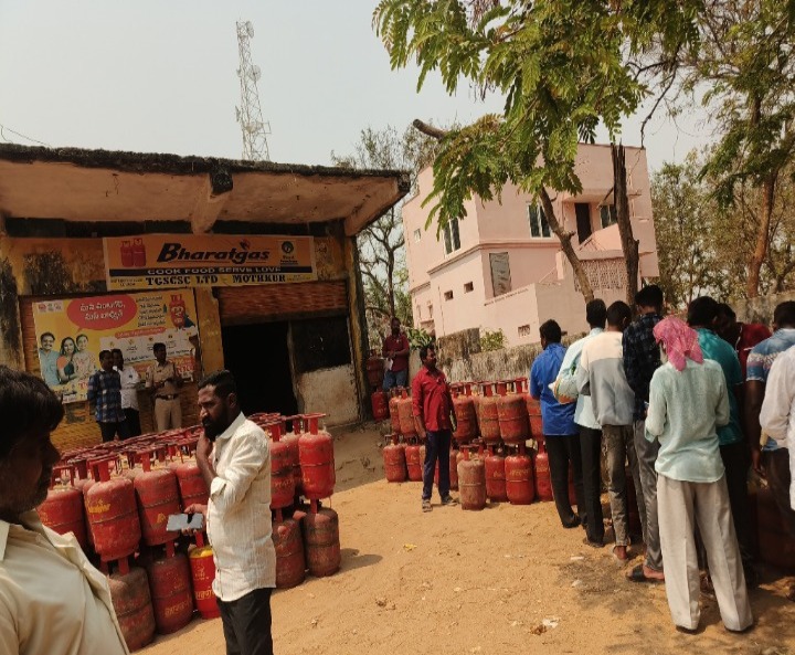 BHNG: మోత్కూర్లో గ్యాస్ సిలిండర్ కోసం వినియోగదారులు శనివారం ఉదయం నుంచే గ్యాస్ గోదాం వద్ద బారులు తీరారు. ఉదయం 9 గంటల నుంచే భారీ క్యూ లైన్లు కనిపించాయి. గ్యాస్ సరఫరా సక్రమంగా లేకపోవడంతో మహిళలు, వినియోగదారులు గంటల తరబడి వేచి ఉండాల్సి వస్తోందని వాపోతున్నారు. సిలిండర్ కోసం ముందుగానే వచ్చి క్యూలో నిలబడాల్సి వస్తోందని తెలిపారు.