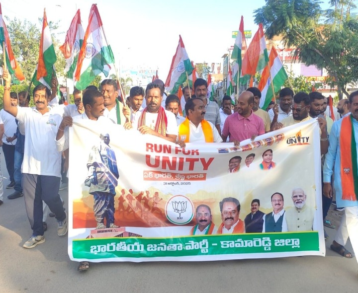 కామారెడ్డి పట్టణ కేంద్రంలో భారతీయ జనతా పార్టీ ఆధ్వర్యంలో జిల్లా అధ్యక్షుడు, చిన్న రాజుల నేతృత్వంలో మున్సిపల్ కార్యాలయం నుంచి సర్దార్ వల్లభాయ్ పటేల్ విగ్రహం వరకు ఏక్త ర్యాలీ నిర్వహించారు. ఈ సందర్భంగా, వల్లభాయ్ పటేల్ 150వ జయంతిని పురస్కరించుకొని ఆయన విగ్రహానికి పూలమాలలు సమర్పించి నివాళులు అర్పించారు. బీజేపీ నాయకులు పాల్గొన్నారు.