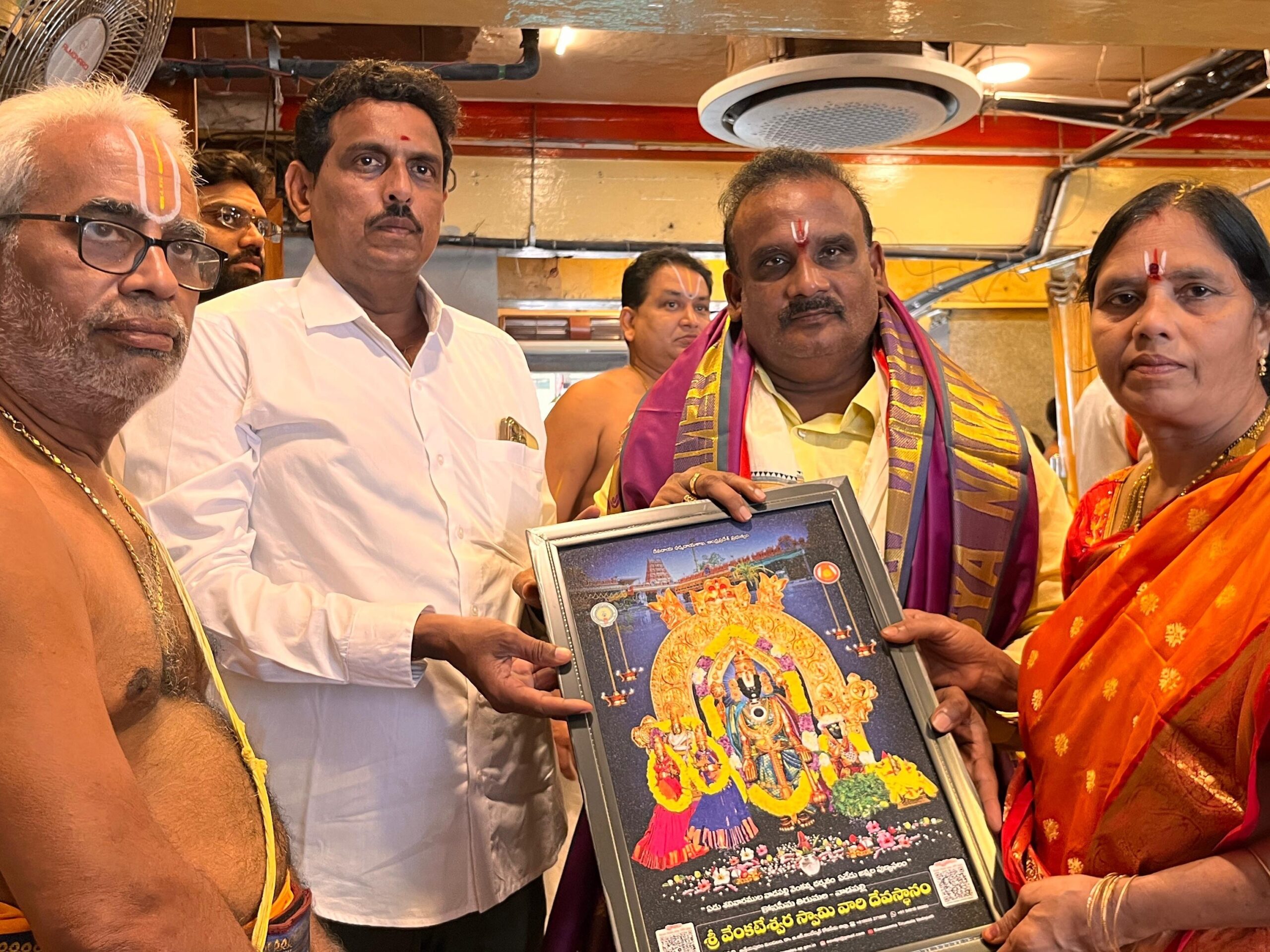 కోనసీమ తిరుమల ఆత్రేయపురం మండలం వాడపల్లి వెంకటేశ్వర స్వామివారిని ఉమ్మడి తూర్పుగోదావరి జిల్లా డీసీఎంఎస్ ఛైర్మన్ పెచ్చెట్టి చంద్రమౌళి కుటుంబ సమేతంగా శుక్రవారం దర్శించుకున్నారు. అర్చకులు ఆయనకు వేదాశీర్వచనం అందించారు. ఆలయ ఛైర్మన్ ముదునూరి వెంకటరాజు ఆయనకు స్వామివారి చిత్రపటాన్ని అందజేశారు. అమ్మవారి ఆశీస్సులు ప్రజలందరిపై ఉండాలని చంద్రమౌళి ఆకాంక్షించారు.