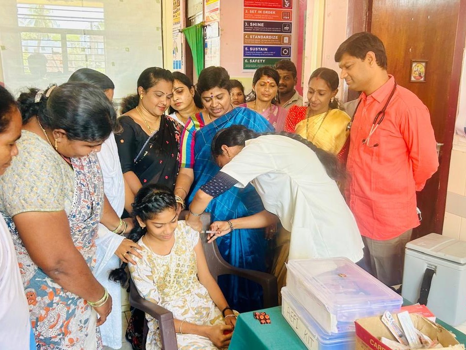 KKD: పిఠాపురం ఇందిరానగర్ పట్టణ ప్రాథమిక ఆరోగ్య కేంద్రంలో HPV (హ్యూమన్ పాపిలోమా వైరస్) టీకా 14 ఏళ్ల వయస్సు నిండిన బాలికలకు వేశారు. టీకా ప్రారంభం కార్యక్రమంలో జనసేన పార్టీ ఉభయ గోదావరి జిల్లాల రీజినల్ కో-ఆర్డినేటర్ చల్లా లక్ష్మి పాల్గొన్నారు. ఆమె మాట్లాడుతూ.. గర్భాశయ క్యాన్సర్ నివారణకు HPV టీకా ఎంతో కీలకమని, అర్హులైన ప్రతి బాలిక టీకా వినియోగించుకోవాలన్నారు.
