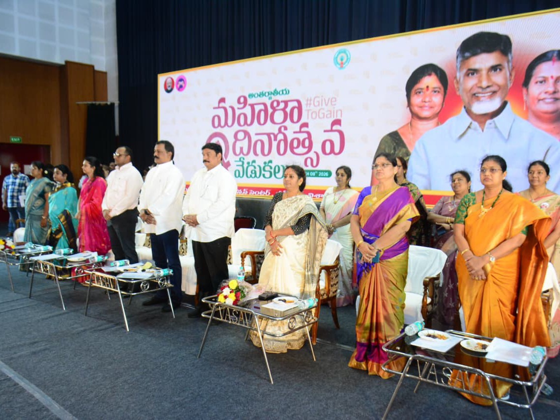 VSP: ఏయూ కన్వెన్షన్ సెంటర్లో జిల్లా యంత్రాంగం ఆధ్వర్యంలో ఆదివారం అంతర్జాతీయ మహిళా దినోత్సవ వేడుకలు ఘనంగా జరిగాయి. ఈ కార్యక్రమానికి ఎమ్మెల్యేలు గంటా శ్రీనివాసరావు, విష్ణుకుమార్ రాజు, కలెక్టర్ ఎం.ఎన్. హరేంధిర ప్రసాద్తో పాటు పలువురు ఉన్నతాధికారులు హాజరయ్యారు. వేడుకల్లో భాగంగా ఏర్పాటు చేసిన స్టాళ్లు ఆకట్టుకున్నాయి.