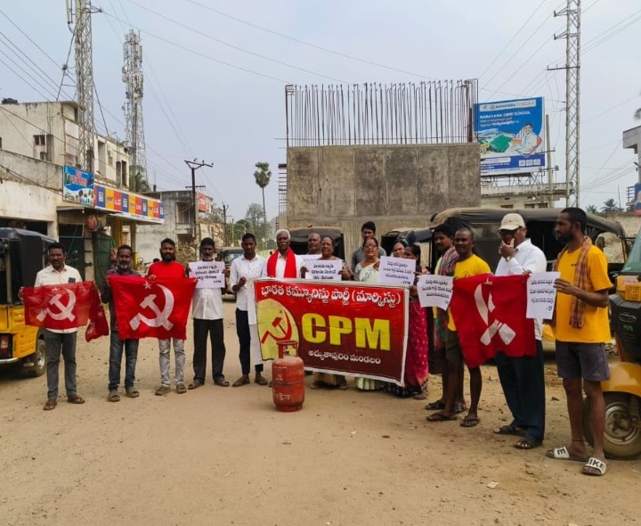 AKP: పెంచిన వంట గ్యాస్ ధరలు తగ్గించాలని అచ్యుతాపురం మండల సీపీఎం కన్వీనర్ ఆర్.రాము డిమాండ్ చేశారు. ఇవాళ అచ్యుతపురంలో నిరసన ప్రదర్శన నిర్వహించారు. మహిళా దినోత్సవం సందర్భంగా ప్రజలపై కేంద్రం మోయలేని భారం మోపిందన్నారు. సిలిండర్కు రూ.60 పెంచడంతో ప్రజలకు ఆర్థికంగా భారం అవుతుందని, ఇరాన్పై యుద్ధం వద్దని అమెరికాపై ఒత్తిడి తీసుకురావాలన్నారు.