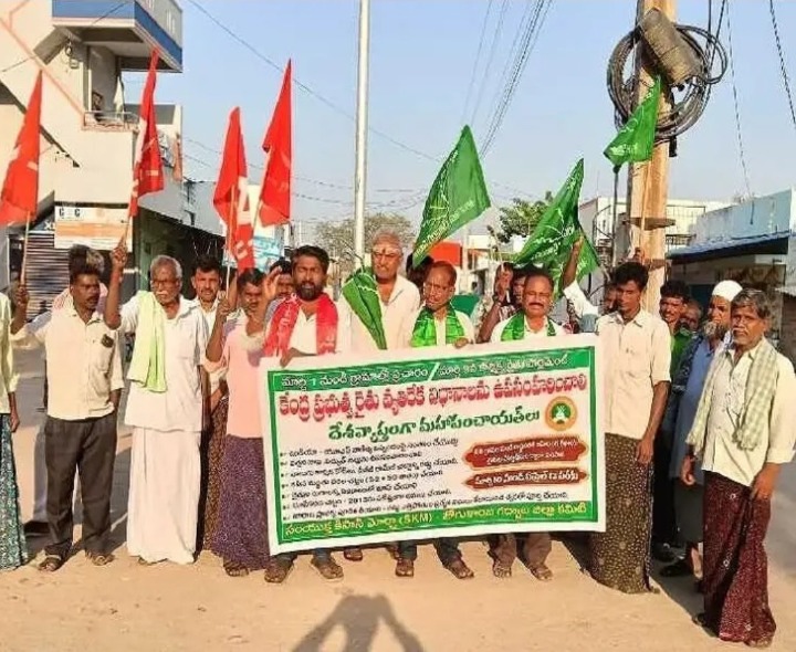 గద్వాల మండలం అనంతపురంలో శనివారం సంయుక్త కిసాన్ మోర్చా (SKM) ఆధ్వర్యంలో భారీ ర్యాలీ నిర్వహించారు. సీపీఐ (ఎంఎల్) న్యూడెమోక్రసీ నాయకులు కార్తీక్, గోపాల్ యాదవ్ నేతృత్వంలో జరిగిన ఈ నిరసనలో కేంద్ర ప్రభుత్వ విత్తన బిల్లు, విద్యుత్ సవరణ చట్టాలను రద్దు చేయాలని డిమాండ్ చేశారు. MSPకి చట్టబద్ధత, రుణమాఫీ సాధించే వరకు పోరాటం ఆగదని వారు స్పష్టం చేశారు.