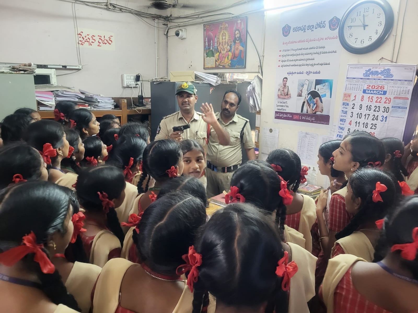 AKP: అంతర్జాతీయ మహిళా దినోత్సవం సందర్భంగా పాయకరావుపేట పోలీస్ స్టేషన్లో శుక్రవారం విద్యార్థులకు ఓపెన్ హౌస్ కార్యక్రమాన్ని నిర్వహించారు. ఈ సందర్భంగా స్టేషన్లో ఉన్న ఆయుధాలు వాటి వినియోగం గురించి వివరించారు. అలాగే లాకప్ రూమ్, రికార్డుల నిర్వహణ, పోక్సో చట్టం, తదితర అంశాలపై సీఐ అప్పన్న విద్యార్థులకు అవగాహన కల్పించారు.
