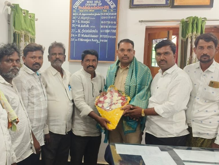 కర్నూలు: పెద్దకడబూరు మండలంలోని చిన్నతుంబళం గ్రామ వైసీపీ నాయకులు చిన్న వీరేష్, యోహాను, చాకలి పెద్ద నారాయణ, ఉసేని, ఇస్సాక్ శుక్రవారం పోలీసు స్టేషన్లో కొత్త ఎస్ఐ మారుతిని మర్యాదపూర్వకంగా కలిశారు. ఎస్ఐ మారుతికి శాలువా కప్పి పూలమాలలతో సన్మానించారు. చిన్నతుంబళం గ్రామంలో శాంతిభద్రతలు, ప్రజల జీవన పరిస్థితులను వివరించారు. శాంతిభద్రతలకు సహకారించాలని ఎస్ఐ కోరారు.