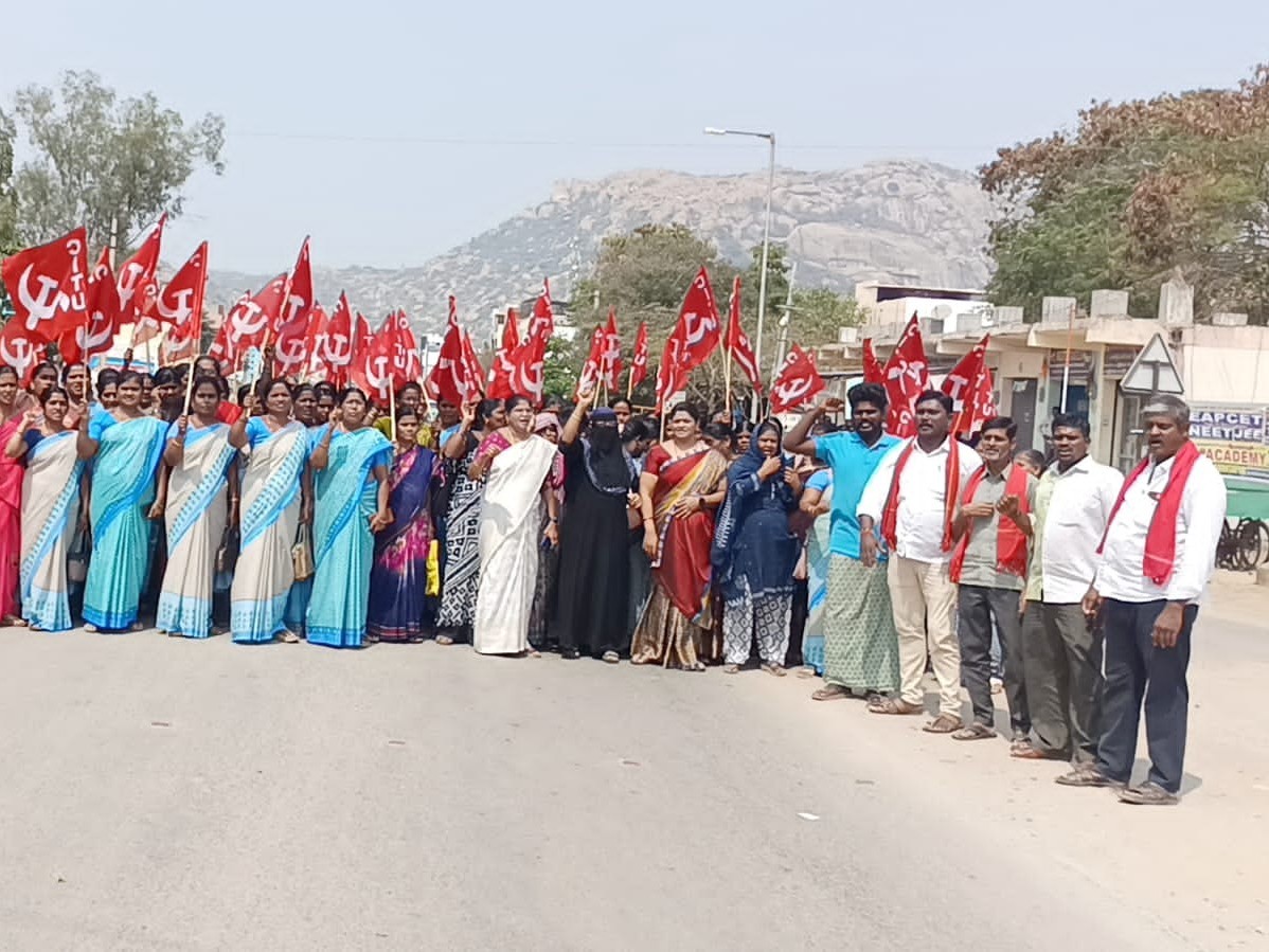 ATP: అంగన్వాడీల సమస్యలు పరిష్కరించాలని విజయవాడలో చేపట్టిన సమ్మెను రాష్ట్ర ప్రభుత్వం అక్రమంగా అరెస్టు చేయించడం దుర్మార్గమని సీఐటీయూ జిల్లా సహాయ కార్యదర్శి మల్లికార్జున పేర్కొన్నారు. అక్రమ అరెస్టులను నిరసిస్తూ రాయదుర్గం పట్టణంలో అంగన్వాడీలతో కలిసి రోడ్డుపై నిల్చుని పెద్ద ఎత్తున ధర్నా చేపట్టారు. అక్రమ అరెస్టులకు భయపడేది లేదని వారు హెచ్చరించారు.
