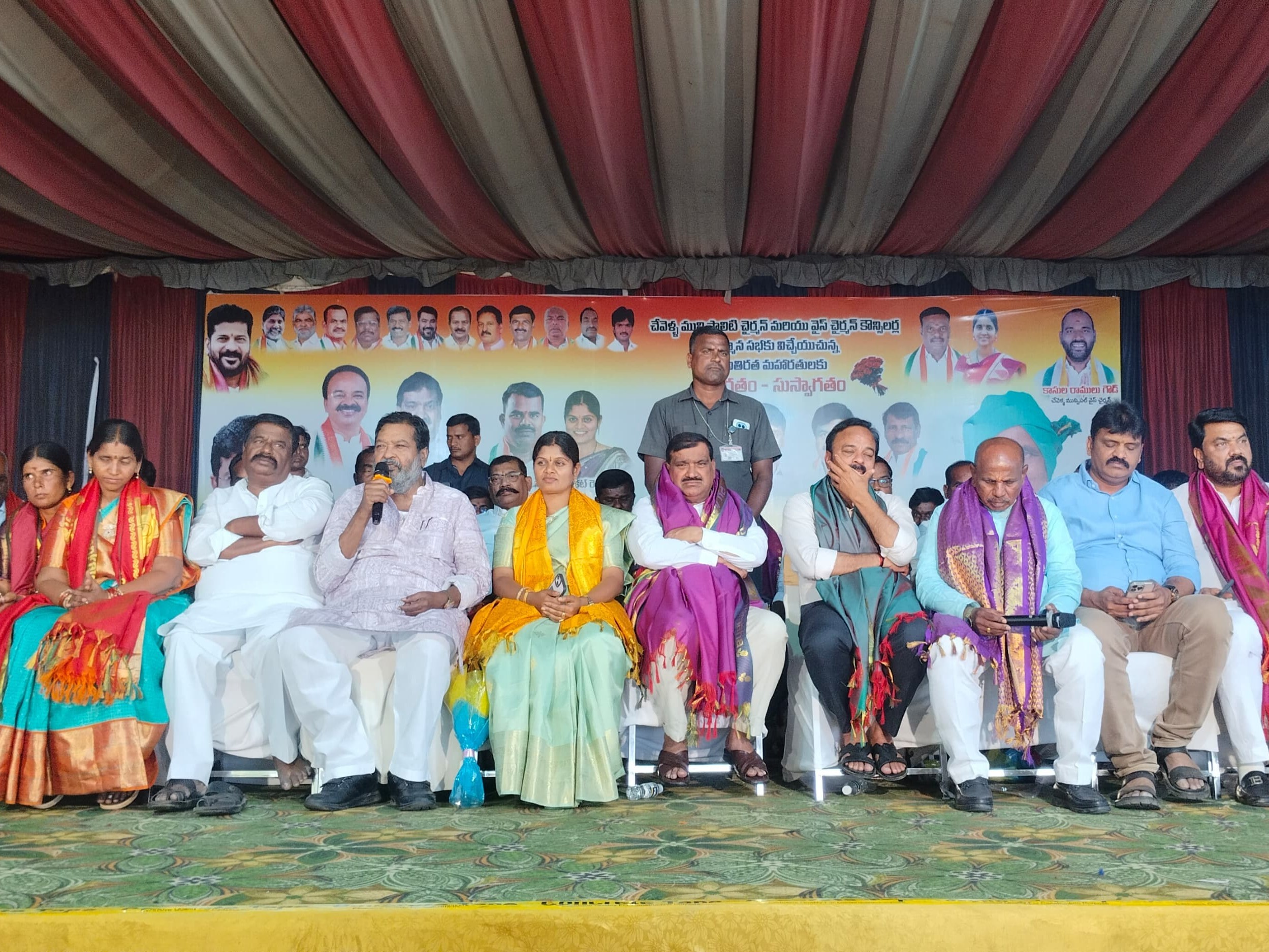 RR: చేవెళ్ల మున్సిపాలిటీ ఛైర్మన్, వైస్ ఛైర్మన్, కౌన్సిలర్ సన్మాన సభ కార్యక్రమంలో ముఖ్య అతిధిగా రంగారెడ్డి జిల్లా కాంగ్రెస్ పార్టీ అధ్యక్షులు చల్లా నరసింహారెడ్డి, ప్రభుత్వ చీప్ విప్ పట్నం మహేందర్ రెడ్డి, చేవెళ్ల నియోజకవర్గం ఎమ్మెల్యే కాలే యాదయ్య, చేవెళ్ల మాజీ ఎంపీ గడ్డం రంజిత్ రెడ్డి పాల్గొన్నారు. ఈ సందర్భంగా వారు మట్లాడుతూ.. మున్సిపాలిటీ అభిరుద్దికి సహకారం అందచేస్తామని అన్నారు.