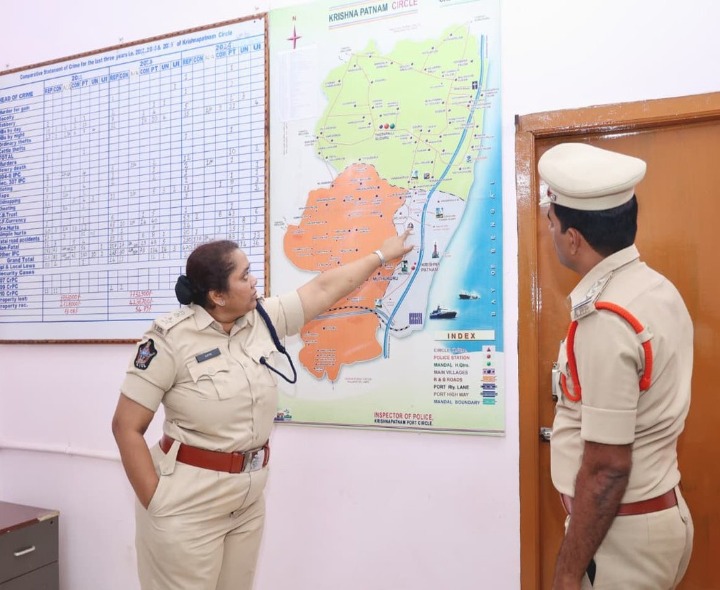 NLR: ముత్తుకూరులోని కృష్ణపట్నం సర్కిల్ కార్యాలయం ముత్తుకూరు పోలీస్ స్టేషన్ను ఎస్పీ అజిత వేజెండ్ల శనివారం సందర్శించారు. తనిఖీలో భాగంగా స్టేషన్లోని పెండింగ్ కేసులు, రికార్డులు, మ్యాపులను నిశితంగా పరిశీలించారు. అధికారులకు పలు కీలక సూచనలు చేశారు. స్టేషన్ సిబ్బందితో మాట్లాడి విధి నిర్వహణలో ఎదురవుతున్న సమస్యలను అడిగి తెలుసుకున్నారు.