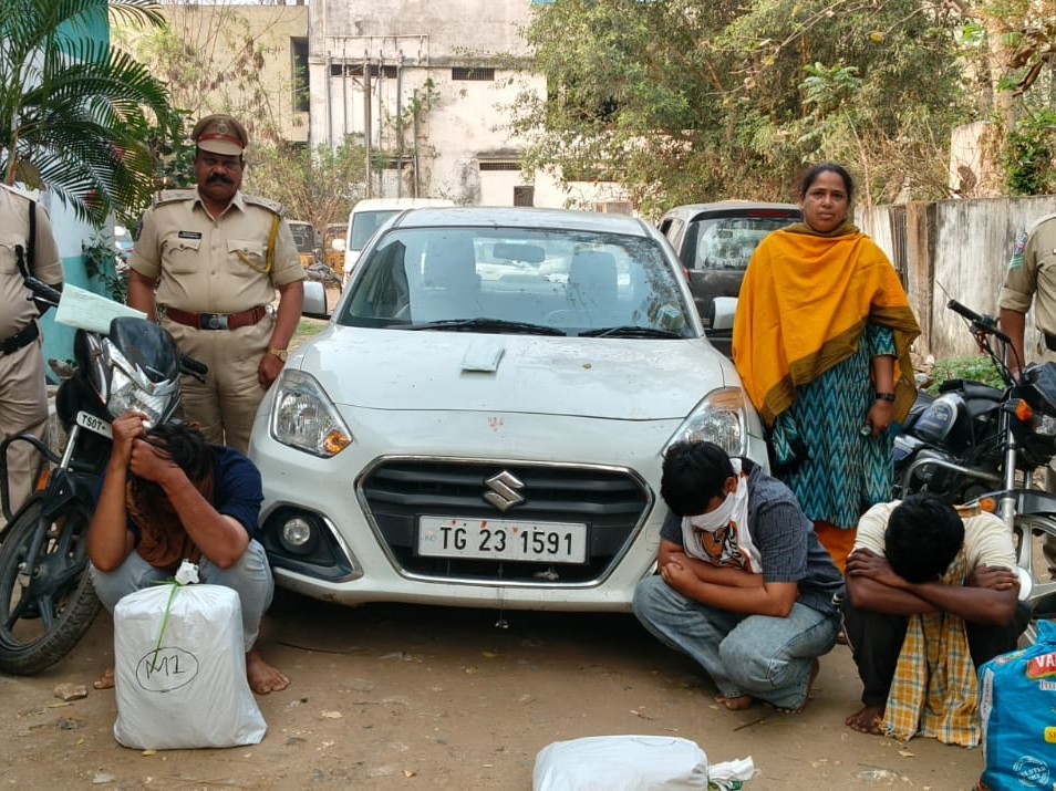 BDK: భద్రాచలం ఆర్టీఏ చెక్పోస్ట్ వద్ద ఎక్సైజ్ అధికారులు వాహన తనిఖీల్లో గంజాయి రవాణాను అడ్డుకున్నారు. సీలేరు–మోతుగూడెం నుంచి హైదరాబాద్కు తరలిస్తున్న నలుగురిని అదుపులోకి తీసుకుని, సుమారు 20 కేజీల గంజాయి, కారు, బైక్, మొబైల్ ఫోన్లు స్వాధీనం చేసుకున్నారు. కేసు నమోదు చేసి నిందితులను కోర్టుకు తరలించారు. సీజ్ చేసిన గంజాయి విలువ రూ.11 లక్షలు ఉంటుందన్నారు.