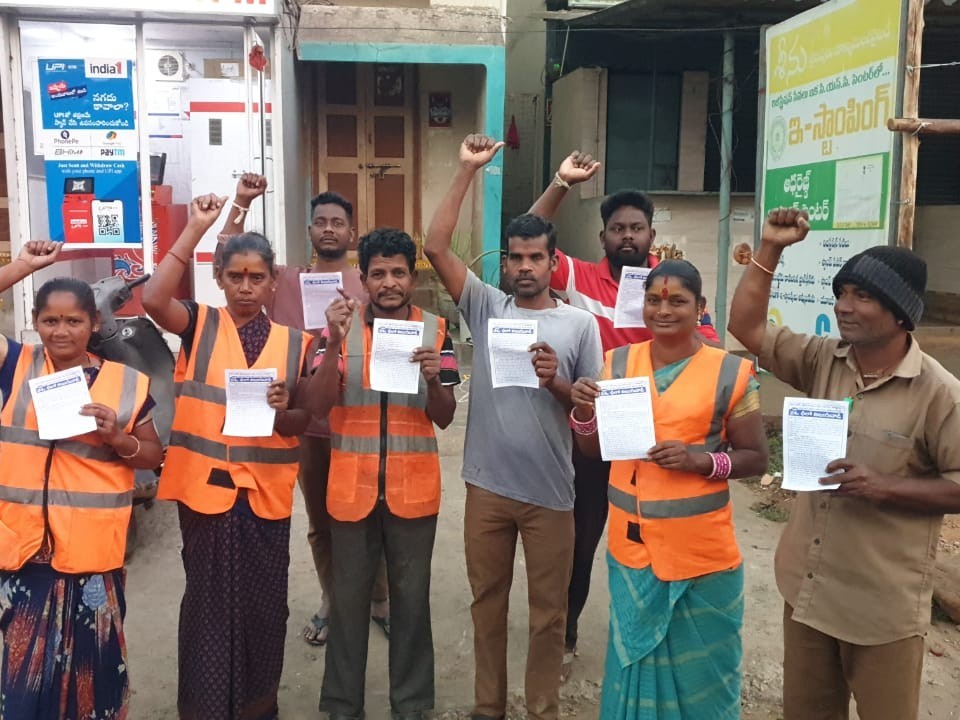 VZM: మున్సిపల్ కార్మికులకు ఇచ్చిన హామీలపై అసెంబ్లీ బడ్జెట్ సమావేశాల్లో చర్చించి తక్షణ చర్యలు తీసుకోవాలని ఏపీ మున్సిపల్ వర్కర్స్ అండ్ ఎంప్లాయీస్ ఫెడరేషన్ (సీఐటీయు) జిల్లా కమిటీ నాయకుడు దుర్గారావు డిమాండ్ చేశారు. మోయిద జంక్షన్లో శనివారం జరిగిన నిరసనలో మాట్లాడుతూ.. గతంలో కుదిరిన ఒప్పందాలకు ఇప్పటివరకు జీవోలు జారీ కాలేదని ఆవేదన వ్యక్తం చేశారు.