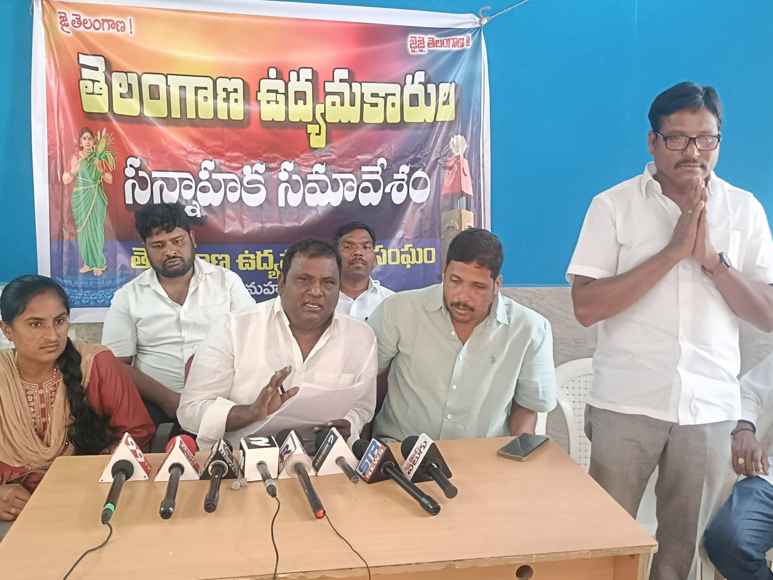 MBNR: జిల్లా కేంద్రంలోని ఆర్ అండ్ బీ గెస్ట్ హౌస్లో తెలంగాణ ఉద్యమాకారుల సన్నాహాక సమావేశం జరిగింది. ఈ సందర్భంగా తెలంగాణ తొలి ఎస్సీ కార్పొరేషన్ ఛైర్మన్ పిడమర్తి రవి మాట్లాడుతూ.. తెలంగాణ ఉద్యమాన్ని ఉవ్వెత్తున నడిపిన ఘనత ఉద్యమకారులదన్నారు. గుర్తింపు కార్డులు, పెన్షన్, ఇందిరమ్మ ఇళ్లు, 25 లక్షల ఎక్స్గ్రేషియా తదితర హామీలు అమలు చేయాలన్నారు.