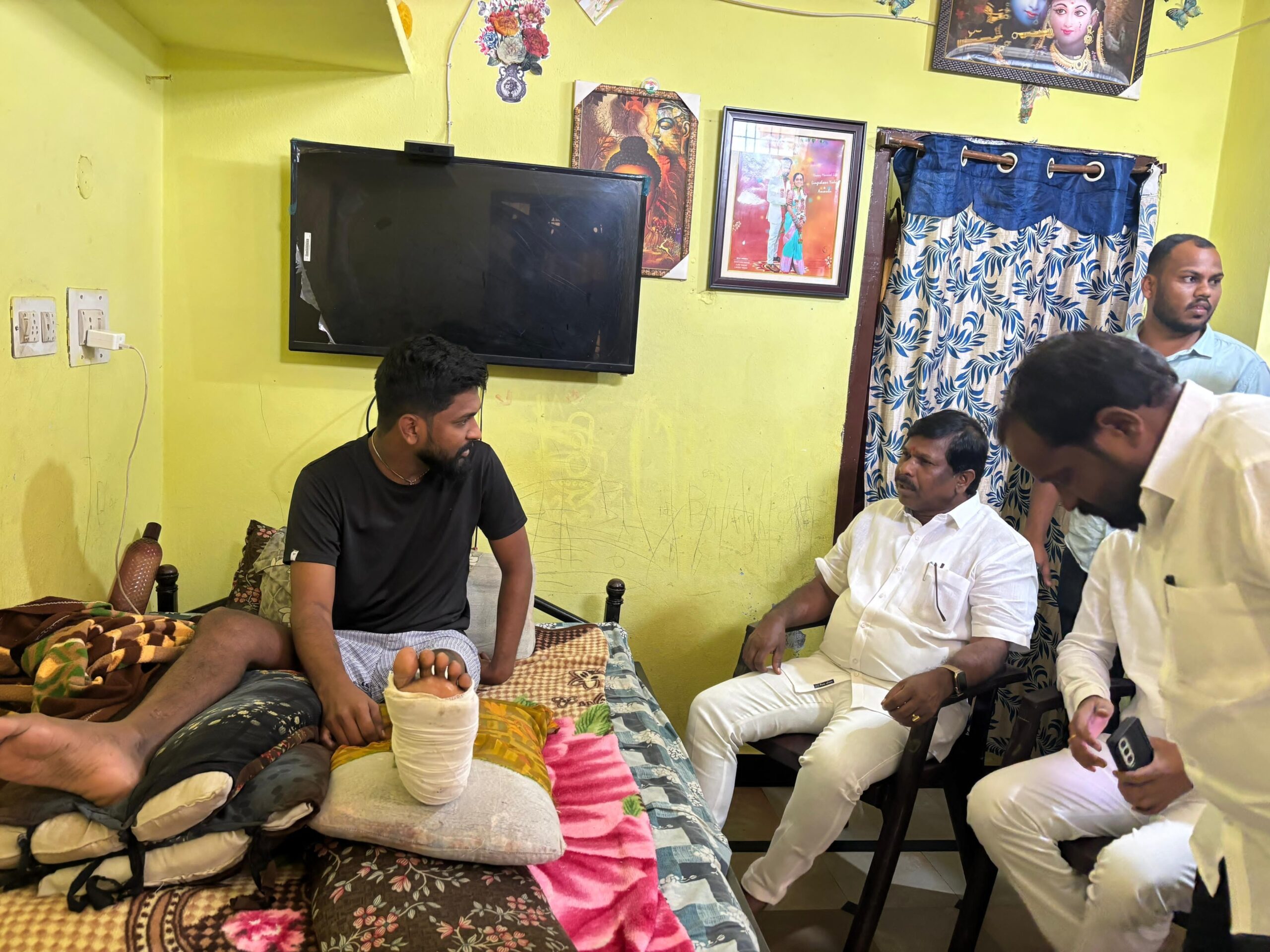 నాగర్ కర్నూలు జిల్లా అచ్చంపేట పట్టణ కాంగ్రెస్ పార్టీ సోషల్ మీడియా కోఆర్డినేటర్ లింగేశ్వర్ యాదవ్ కొద్ది రోజుల క్రితం రోడ్డు ప్రమాదంలో గాయపడ్డారు. విషయం తెలుసుకున్న అచ్చంపేట ఎమ్మెల్యే డాక్టర్ చిక్కుడు వంశీకృష్ణ గురువారం ఆయన నివాసానికి వెళ్లి పరమర్శించారు. ఆరోగ్య స్థితిగతులను గురించి అడిగి తెలుసుకున్నారు. మెరుగైన వైద్యం తీసుకోవాల్సిందిగా సూచించారు.