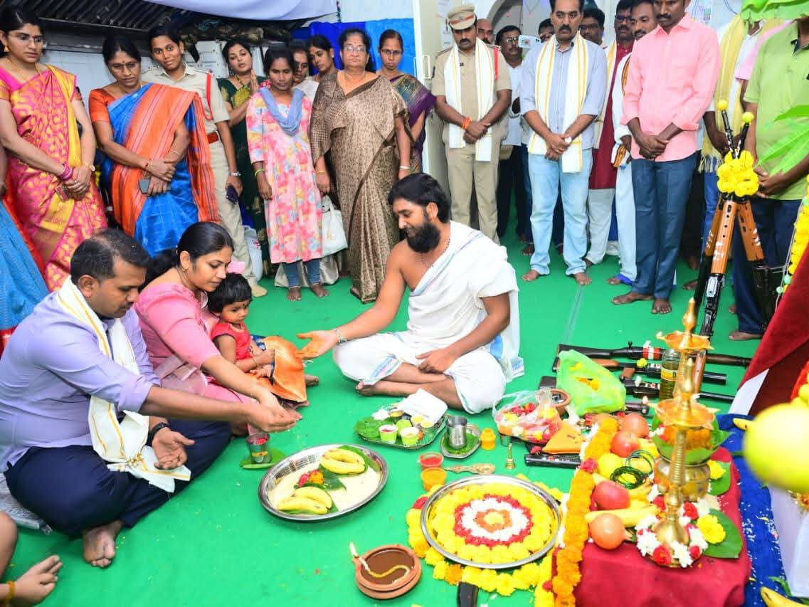 సత్యసాయి: జిల్లా ఎస్పీ సతీష్ కుమార్ విజయదశమి సందర్భంగా ప్రజలకు, పోలీసు సిబ్బందికి, మీడియా ప్రతినిధులకు శుభాకాంక్షలు తెలిపారు. జిల్లా పోలీస్ కార్యాలయంలో భార్యతో కలిసి ఆయుధ పూజను ఘనంగా నిర్వహించారు. ఈ సందర్భంగా దుర్గాదేవి చిత్రపటానికి తుపాకులు, వాహనాలకు పూజలు చేశారు. ప్రజలు సంతోషంగా పండుగ జరుపుకోవాలని ఆకాంక్షించారు.