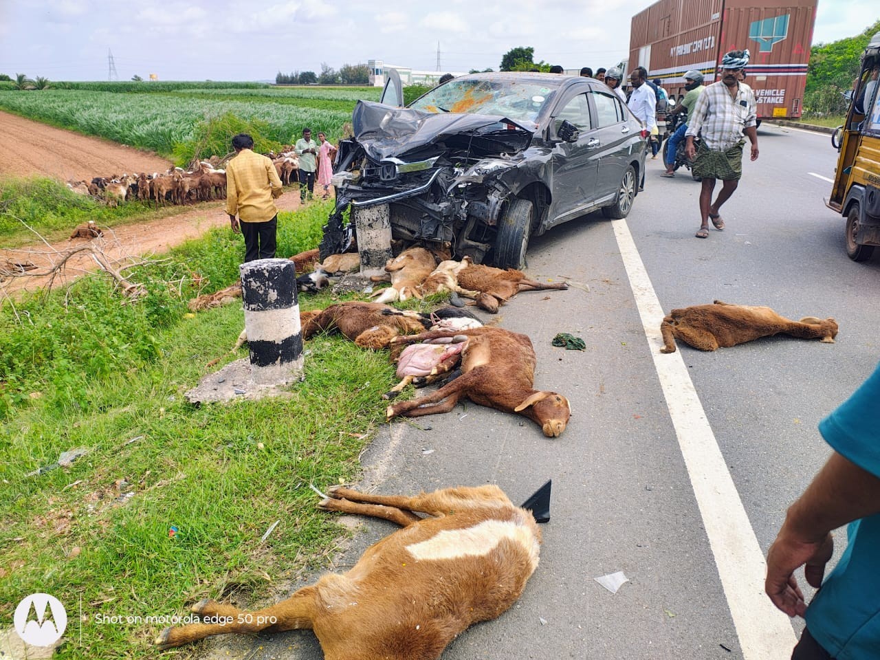 KRNL: జిల్లా కల్లూరు మండలం బస్తీపాడు గ్రామానికి చెందిన కురువ ఎల్ల రాముడు(33) ఇవాళ కారు ఢీకొని మృతి చెందాడు. ఉలిందకొండ నేషనల్ హైవేలో గొర్రెలను రోడ్డు దాటిస్తుండగా కర్నూల్ నుంచి వేగంగా వస్తున్న కారు గొర్రెల మందపైకి దూసుకెళ్లింది. 33 గొర్రెలతో సహా కాపరి అక్కడికక్కడే మృతి చెందారు. మృతుడికి నలుగురు ఆడపిల్లలు ఉన్నట్లు స్థానికులు తెలిపారు.
