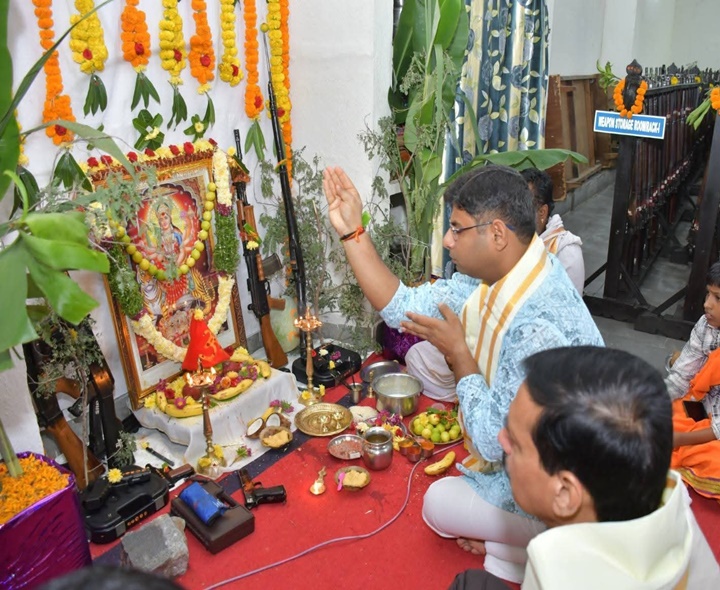SRD: దుర్గాష్టమి పర్వదినాన్ని పురస్కరించుకొని జిల్లా సాయుధ పోలీస్ కార్యాలయంలో ఆయుధ పూజ, మోటర్ వెహికల్ సెక్షన్లో వాహన పూజలను మంగళవారం జిల్లా SP పరితోష్ పంకజ్ నిర్వహించారు. జిల్లాలో శాంతి భద్రతల పరిరక్షించడంలో, నేరాలను నియంత్రించడంలో జిల్లా పోలీసులు సఫలీకృతం అవ్వాలని కోరుకున్నట్లు తెలిపారు.