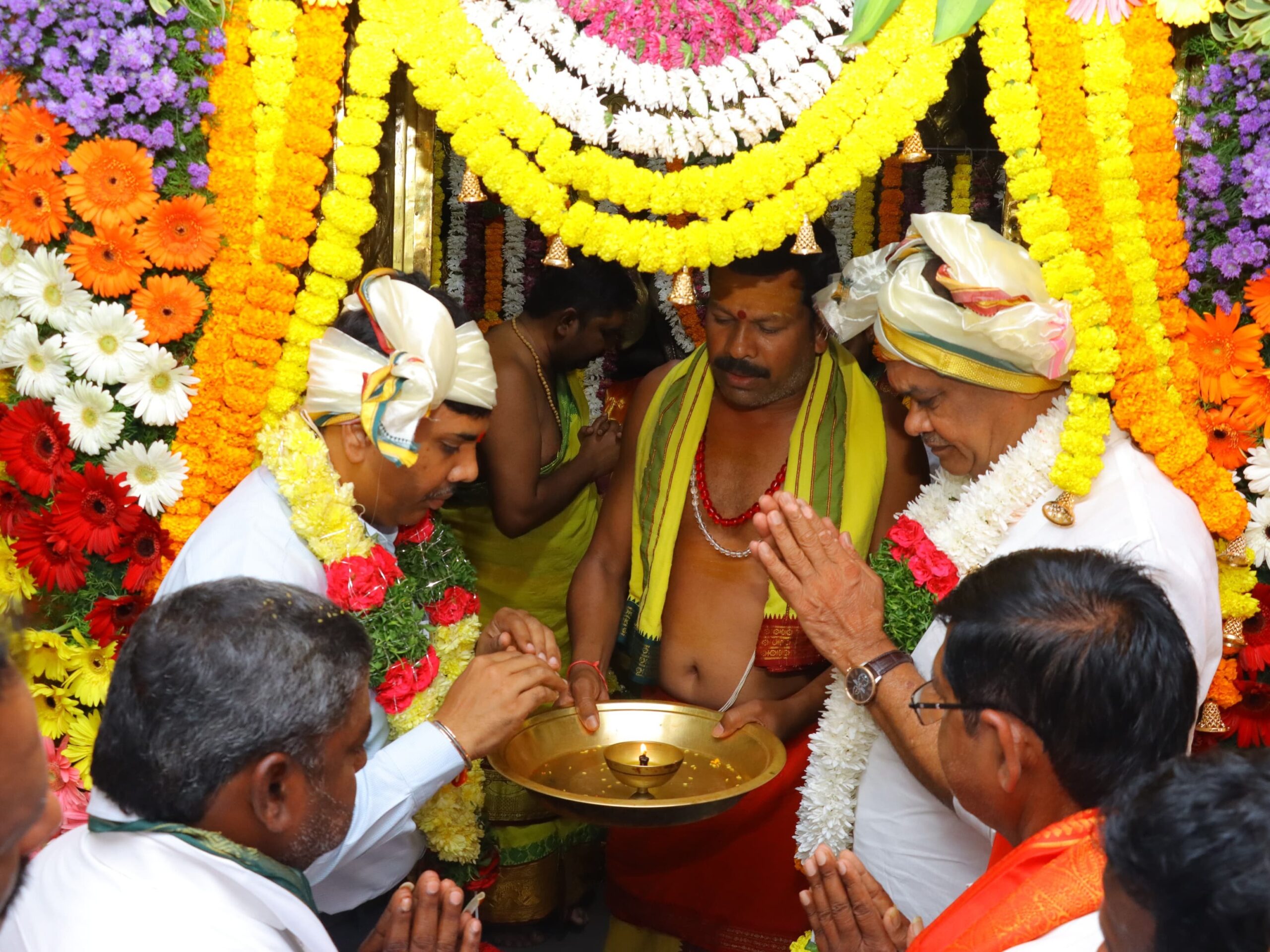NLG: కనగల్ మండలం దర్వేశపురం ఎల్లమ్మ అమ్మవారి దేవస్థానంలో రాష్ట్ర రోడ్లు భవనాలు, సినిమాటోగ్రఫీ శాఖ మంత్రి కోమటిరెడ్డి వెంకట్ రెడ్డి ఈరోజు అమ్మవారిని దర్శించుకున్నారు. ఈ సందర్భంగా ప్రత్యేక పూజలు నిర్వహించి ప్రజలు సుభిక్షంగా ఉండేలా చూడాలని ఎల్లమ్మ తల్లిని కోరుకున్నారు. దేవస్థానం అభివృద్ధిపై పలు సూచనలు చేశారు. జిల్లా కలెక్టర్ చంద్రశేఖర్ పాల్గొన్నారు.