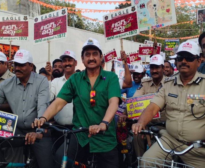 NTR: నందిగామలో డ్రగ్స్ పై అవగాహన సైకిల్ ర్యాలీ ఘనంగా నిర్వహించారు. ముఖ్య అతిథిగా సినీ హీరో సుమన్ హాజరై డ్రగ్స్ రహిత సమాజ నిర్మాణం ప్రతి ఒక్కరి బాధ్యత అని పిలుపునిచ్చారు. పోలీస్ కమిషనర్ ఎస్.వి. రాజశేఖర్ బాబు ఆధ్వర్యంలో 30వ రోజుకు చేరిన ఈ ర్యాలీ జాతరను తలపించింది. డీజే సౌండ్స్తో సాగిన ర్యాలీలో పోలీస్ అధికారులు, విద్యార్థులు పాల్గొన్నారు.