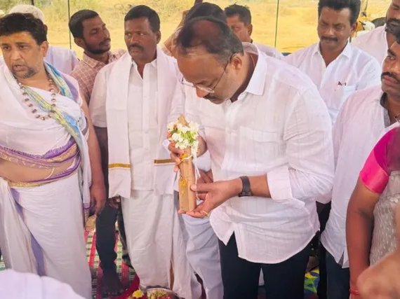 అన్నమయ్య: సంబేపల్లి(మం) దుద్యాల గ్రామంలోని కొండ కింద పల్లెలో నూతన రామాలయ నిర్మాణానికి బుధవారం భూమి పూజ ఘనంగా జరిగింది. TDP నేత మండిపల్లి లక్ష్మీ ప్రసాద్ రెడ్డి ముఖ్య అతిథిగా హాజరై శంకుస్థాపన చేశారు. రాయచోటి నియోజకవర్గంలో 39 ఆలయాల కోసం టీటీడీ శ్రీవాణి ట్రస్టు రూ. 6.7 కోట్లు మంజూరు చేసిందని, అందులో భాగంగా ఈ రామాలయానికి రూ.10 లక్షలు కేటాయించినట్లు ఆయన తెలిపారు.