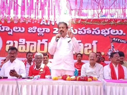 KRNL: ఆలూరులో ఏఐటీయూసీ జిల్లా 21వ మహాసభలు ఇవాళ అట్టహాసంగా నిర్వహించారు. వేలాది కార్మికులతో ర్యాలీ నిర్వహించి బహిరంగ సభ ఏర్పాటు చేశారు. సీపీఐ జాతీయ కార్యదర్శి కే. రామకృష్ణ కేంద్ర ప్రభుత్వ విధానాలపై విమర్శలు చేశారు. కార్మిక హక్కుల కోసం పోరాటాన్ని కొనసాగించాలని నాయకులు పిలుపునిచ్చారు.