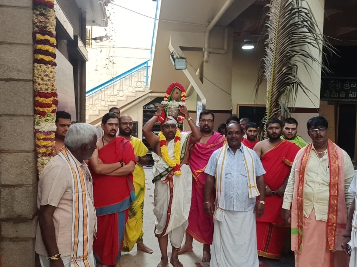 ATP: దసరా నవరాత్రి ఉత్సవాలలో భాగంగా 8వ రోజు సోమవారం గుంతకల్లు పట్టణంలోని శ్రీ వాసవి కన్యకా పరమేశ్వరి అమ్మవారి ఆలయంలో అమ్మవారికి విశేష పూజలు నిర్వహించారు. ఆలయ అర్చకులు అమ్మవారి మూలమూర్తికి వివిధ రకాల పుష్పాలు వెండి, బంగారు ఆభరణాలతో సరస్వతి దేవిగా అలంకరించి భక్తులకు దర్శనం కల్పించారు. అమ్మవారికి బింద సేవ పూజ కార్యక్రమం నిర్వహించారు.