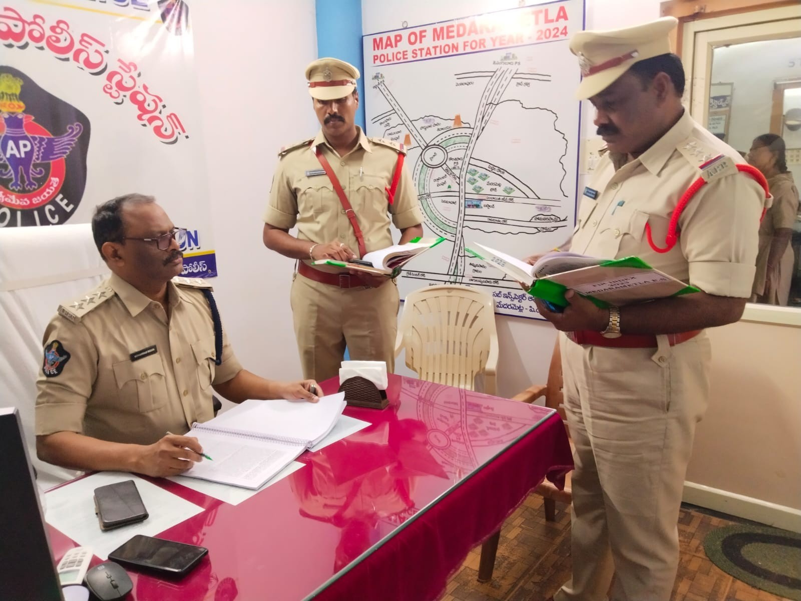 BPT: కొరిశపాడు మండలం మెదరమెట్లలోని పోలీస్ స్టేషన్ను ఇవాళ రాత్రి డీఎస్పీ మహమ్మద్ మొయిన్ ఆకస్మికంగా తనిఖీ చేశారు. స్టేషన్లో పలు కేసులకు సంబంధించి రికార్డులను ఆయన పరిశీలించారు. పెండింగ్ కేసులు తదితర వివరాలను ఆరా తీశారు. రోడ్డు ప్రమాదాల నివారణకు తీసుకుంటున్న చర్యలను ఆయన అడిగి తెలుసుకున్నారు.