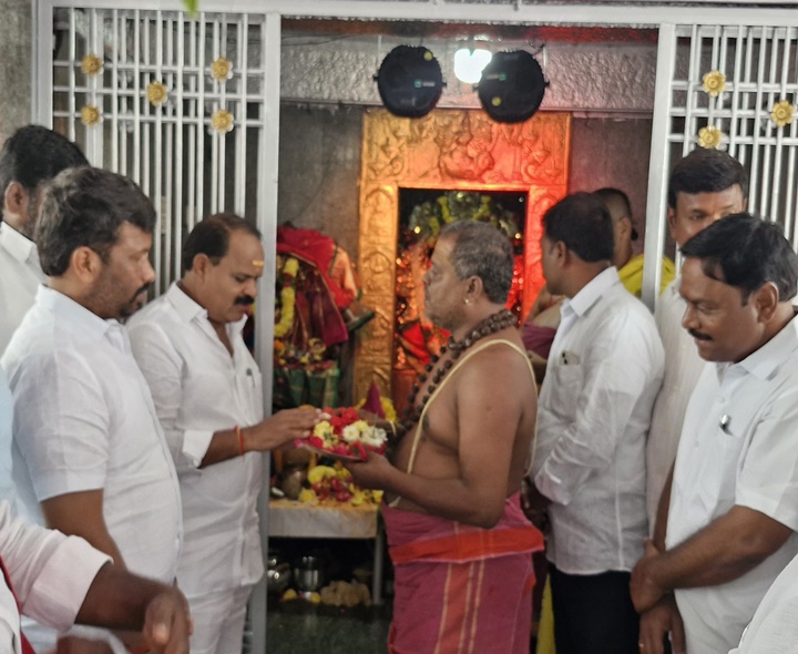 RR: దేవి శరన్నవరాత్రుల ఉత్సవాలను పురస్కరించుకొని షాద్నగర్ పరిధిలోని వెంకటేశ్వర స్వామి దేవాలయంలో కాత్యాయని దేవిరూపంలో అమ్మవారు భక్తులకు దర్శనమిచ్చారు. ఈ సందర్భంగా అమ్మవారికి ఎమ్మెల్యే వీర్లపల్లి శంకర్ ప్రత్యేక పూజలు నిర్వహించారు. ఆయన మాట్లాడుతూ.. లోక శాంతి కోసం తొమ్మిది రోజులు తొమ్మిది రూపాలుగా అమ్మవారిని పూజించి ఆరాధిస్తారన్నారు.